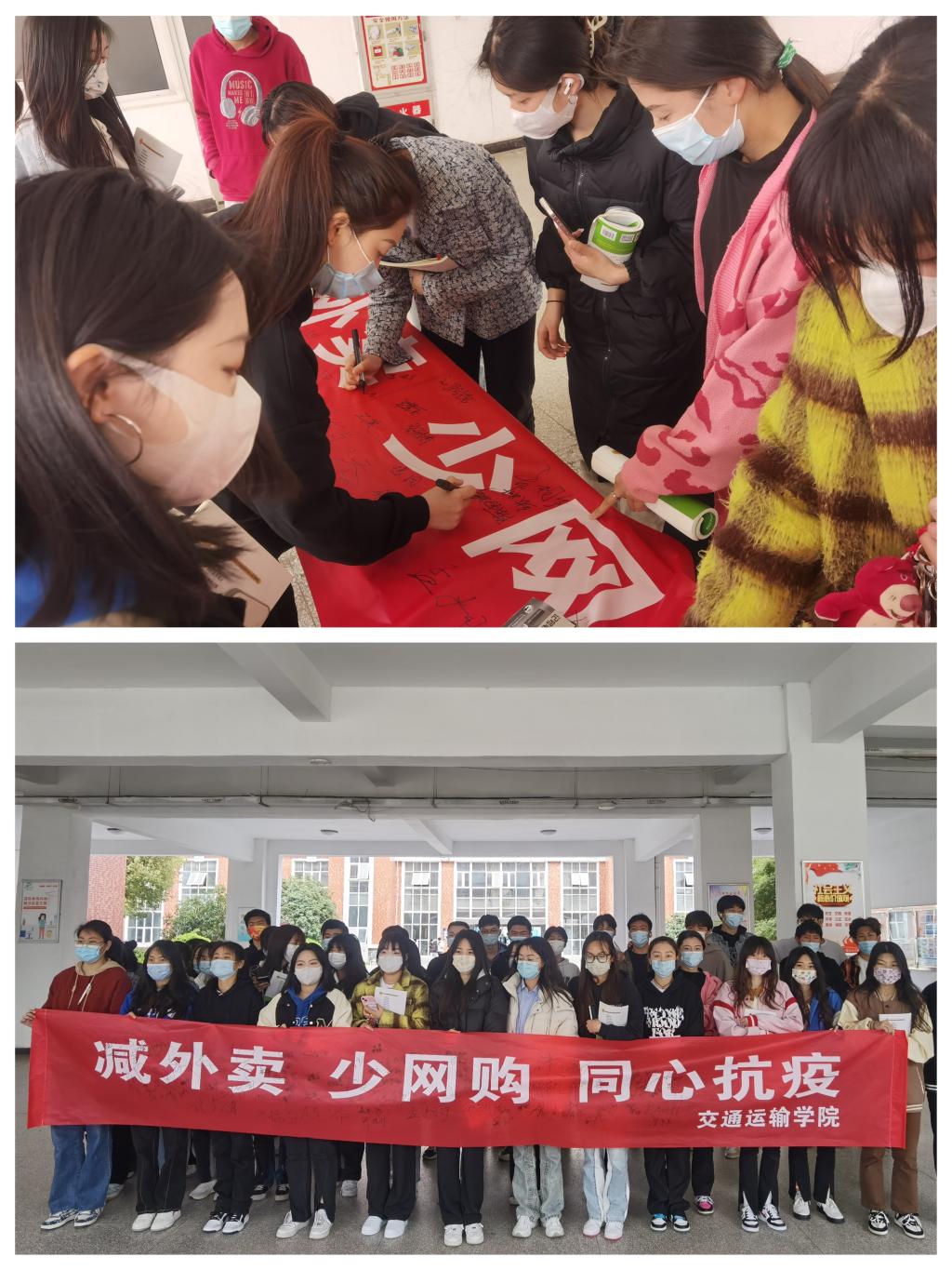为阻断疫情传播链条,确保必赢官网师生的身体健康和生命安全,筑牢疫情防控坚固防线,2022年3月31日,交通运输学院团总支在提出倡议的基础上,又组织开展“减外卖少网购,共携手防输入”的主题宣讲和签名活动。