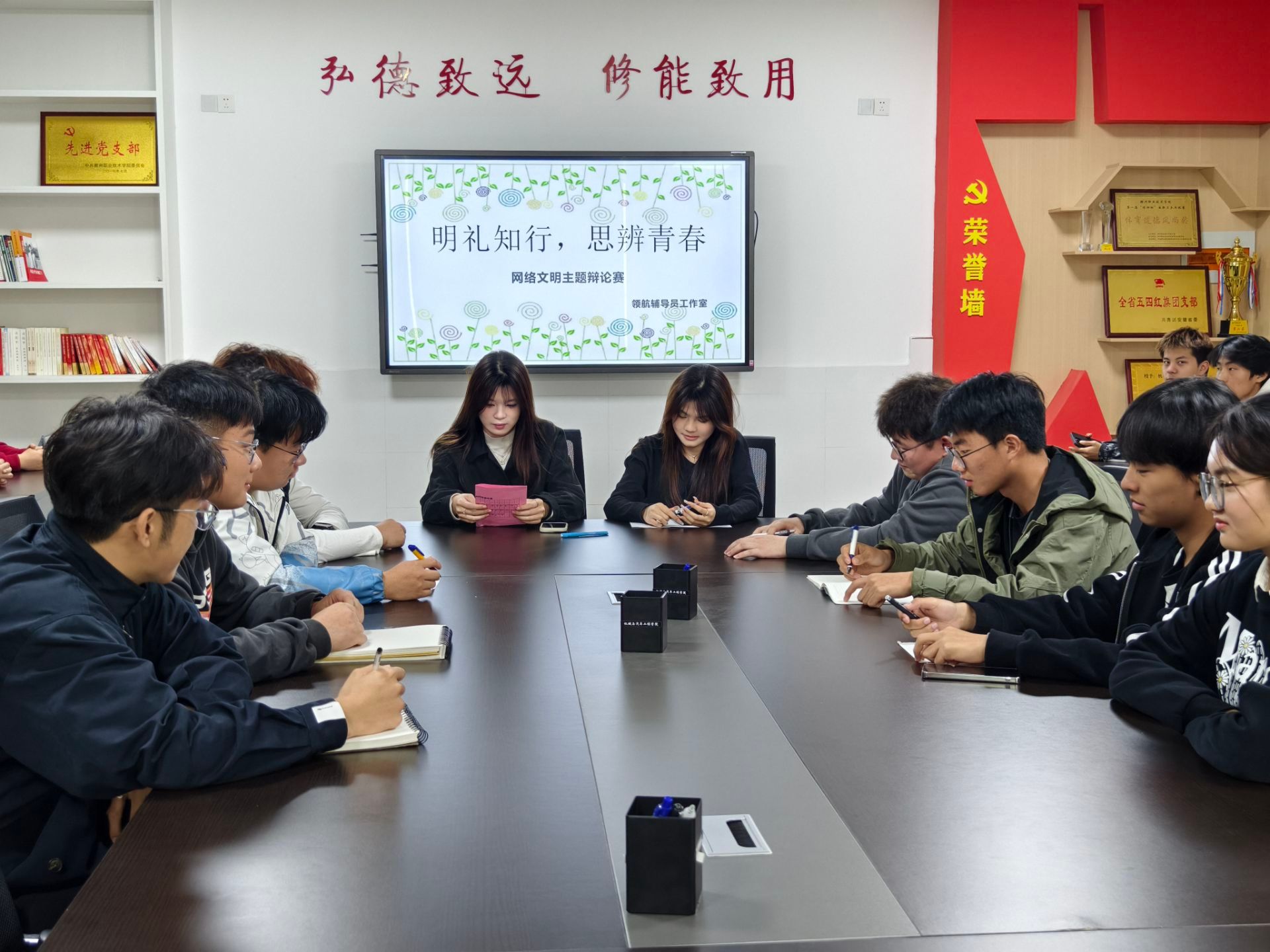 近日,领航辅导员工作室组织开展“明礼知行,思辨青春”网络文明主题辩论赛。此次辩论赛旨在提升大学生对网络文明的认知,引导其树立正确的网络价值观,营造清朗的校园网络环境。