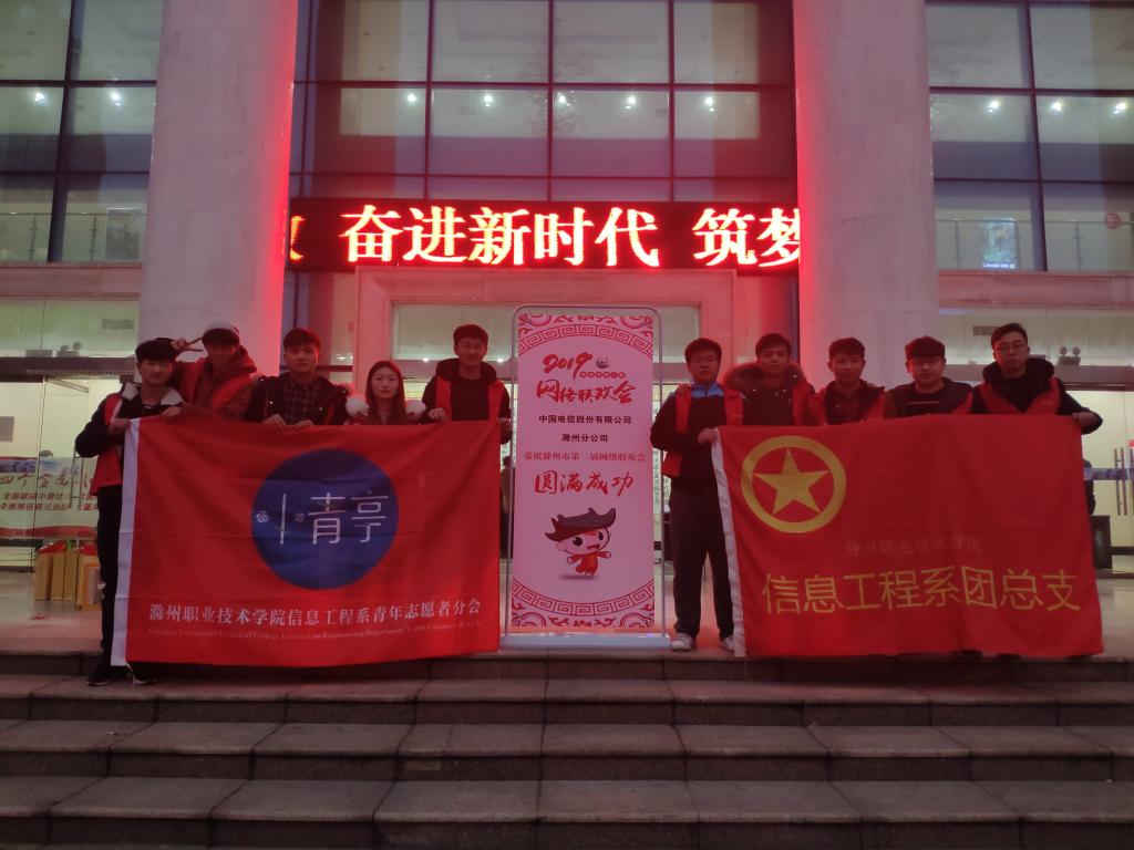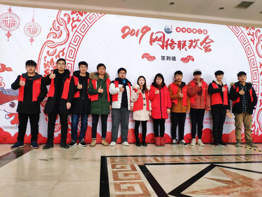 1月19日下午,由中共滁州市委宣传部指导,滁州市互联网宣传管理办公室主办的第二届网络联欢会在滁州大剧院如期上演,437必赢会员中心信息工程系受邀为晚会提供了志愿服务。