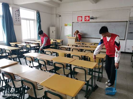 各支部的志愿者们以认真负责的态度开展清扫工作,明确分工,积极合作,仔细清理每一个死角,经过同学们的共同努力,每个教室都变得焕然一新。