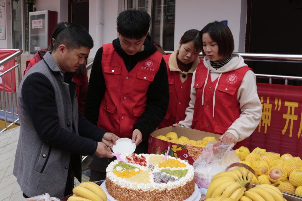 活动一开始,志愿者们就积极搬椅子,布置现场,之后就开始搬运水果,生日蛋糕。志愿者们为爷爷奶奶们准备了生日祝福歌,为爷爷奶奶们带上了生日帽,分发生日蛋糕,一起感受生日的快乐,现场其乐融融。之后,还给爷爷奶奶发送了苹果、香蕉,爷爷奶奶们的脸上都洋溢着幸福的笑容。
