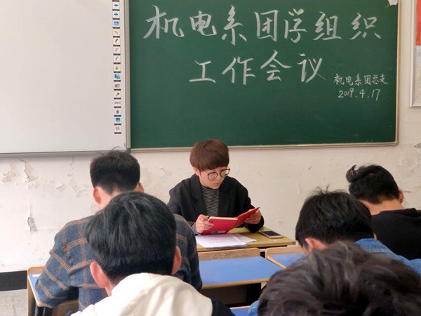 4月17日,机电系在5305教室召4月份开团学组织工作会议,会议由我系团总支书记张文主持,全体团学干部参加。
