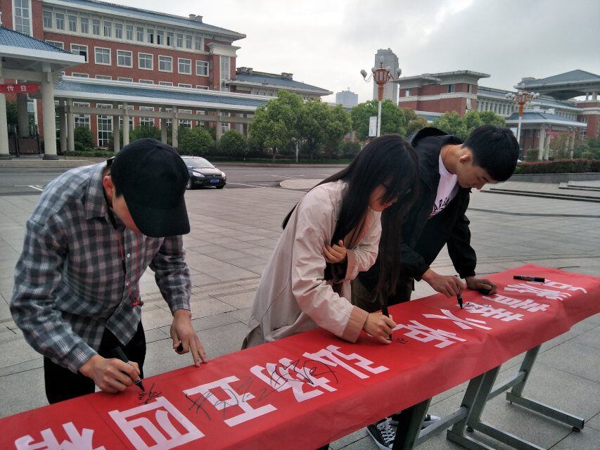 升旗仪式一开始,升国旗奏国歌,伴着雄壮的国歌声响起全体同学注目行礼,清晨的风带有一丝凉意,依旧打不倒同学们的热情。之后,由学生代表王孟祥做国旗下发言,五四运动虽然过去了100年,但五四精神确一直传承至今,炙热的爱国之情,鞭策鼓舞了一代又一代的热血青年为民族的发展而奋斗。最后,由学生代表上台签字。