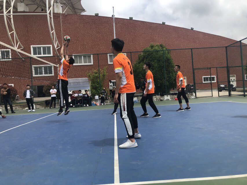 为了丰富大学生的业余生活,培养同学之间的团结合作能力,4月30日中午在排球场举行男子排球比赛,此次比赛经贸系对战机电系。