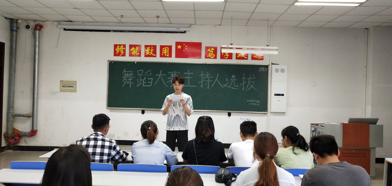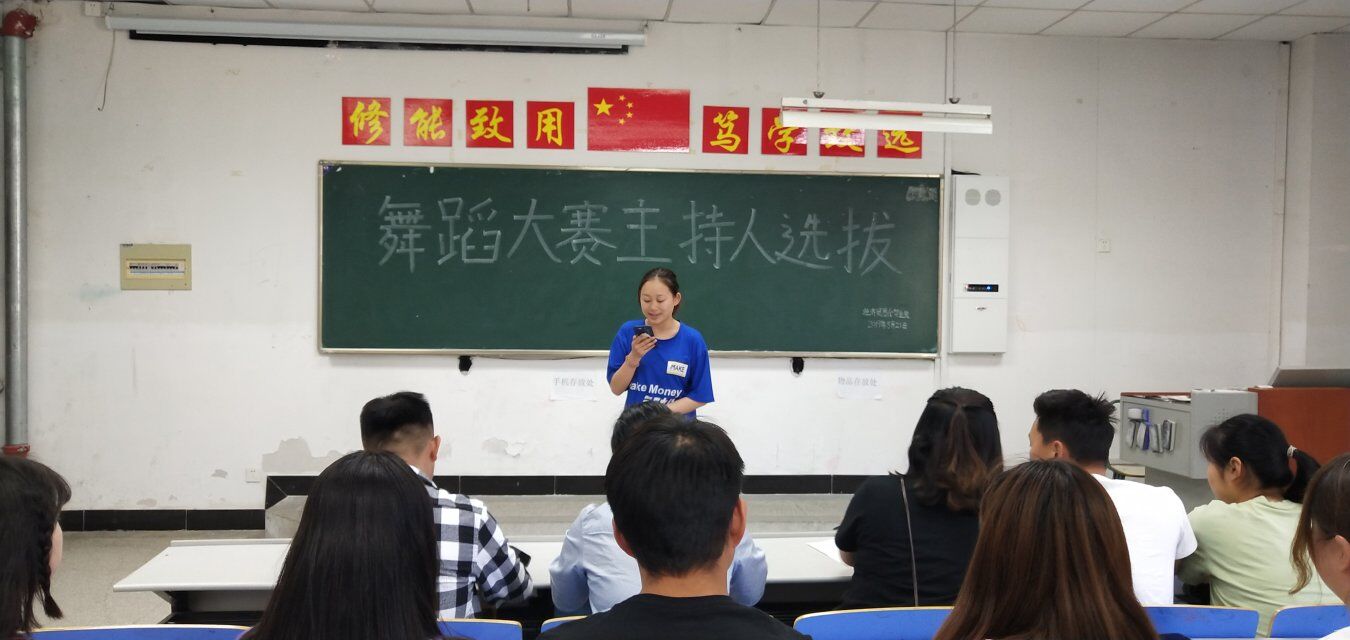 为了更好的迎接舞蹈大赛的到来,经贸系学生会文娱部于5月21日在1101教室举办“舞蹈大赛主持人竞选”活动,参加此次活动的评委有经贸系团总支副书记赵莹老师;学生会主席章婉;文娱部部长吴正凯;办公室主任黄雅倩;办公室副主任肖付才。