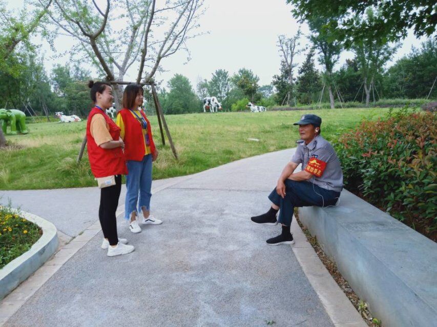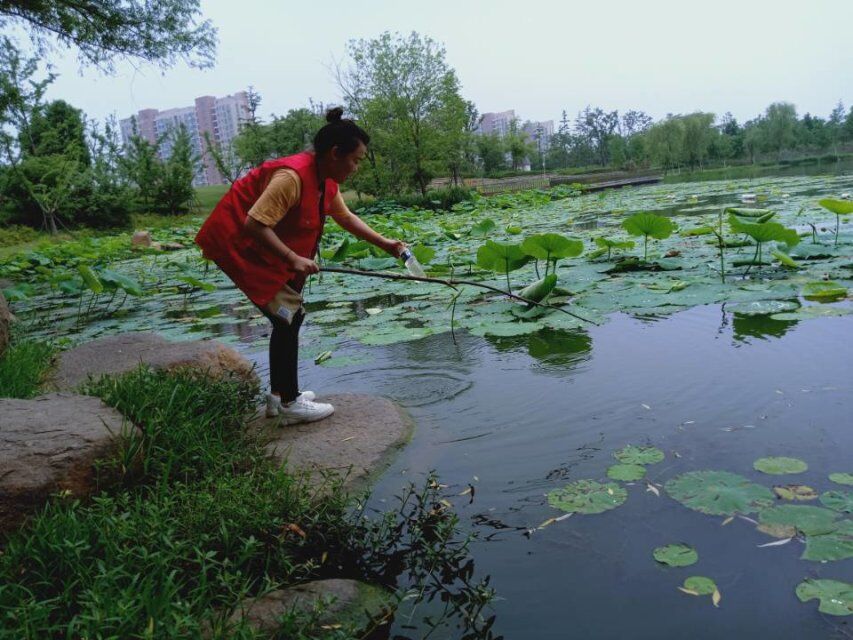 在志愿者们到达花博园之后,便先帮助环卫工人拾垃圾,目光所能及之处都有志愿者的身影,炎热的天气没有一会儿便汗流浃背,这让志愿者们深切体会到环卫工人在这样的天气里工作的不易及辛苦。在拾垃圾途中,有志愿者遇见了环卫工人,并且和他们做了简短的交流,了解到他们的工作日常和作息时间。在此期间,环卫工人表示虽然从事的工作很辛苦、很累,但是他们依旧很开心并且热爱自己的工作。