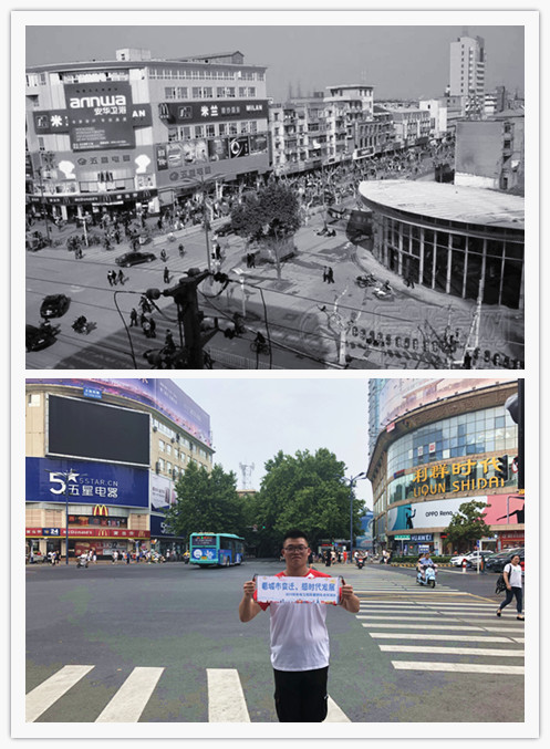 隔天,实践小分队根据老滁城的旧照片沿路寻访,与实地进行了对比。从四牌楼出发,走过南湖公园、天长路、滁州站、琅琊山、高杆灯……又来到城南新区,一座座高楼耸立,大型公益性公园花博园是市民休闲娱乐新去处、高铁站为市民提供便捷等。通过实地与旧照片的对比,实践队的成员们深切感受到了滁州市的新风、新貌、新变化,看到了改革开放以来的巨变。