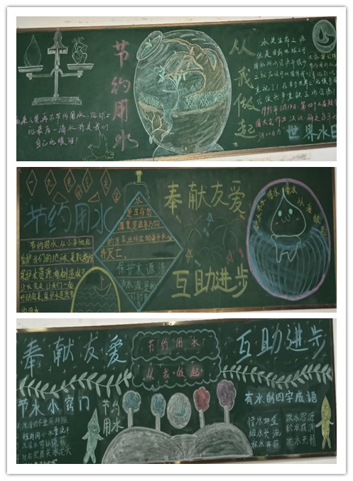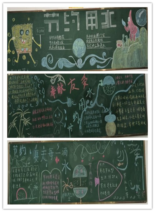 板报内容积极宣传节约用水常识,普及节约用水知识,图文并茂的诠释了节约用水的重要性,希望同学们能够积极参与,培养热爱谁、珍惜水、节约水、保护水的意识,养成节约用水的良好习惯,共同维护美好家园。节约用水,从我做起!