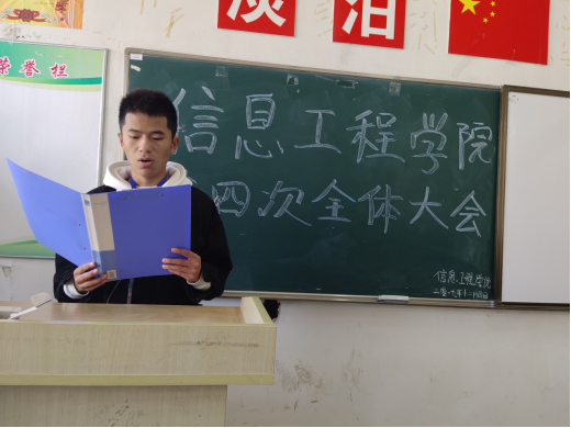 12月4日中午,信息工程学院学生会第四次全体大会在致善楼2502教室举行,参加会议的有学生会主席团、学生会各部门部长以及大一全体干事。