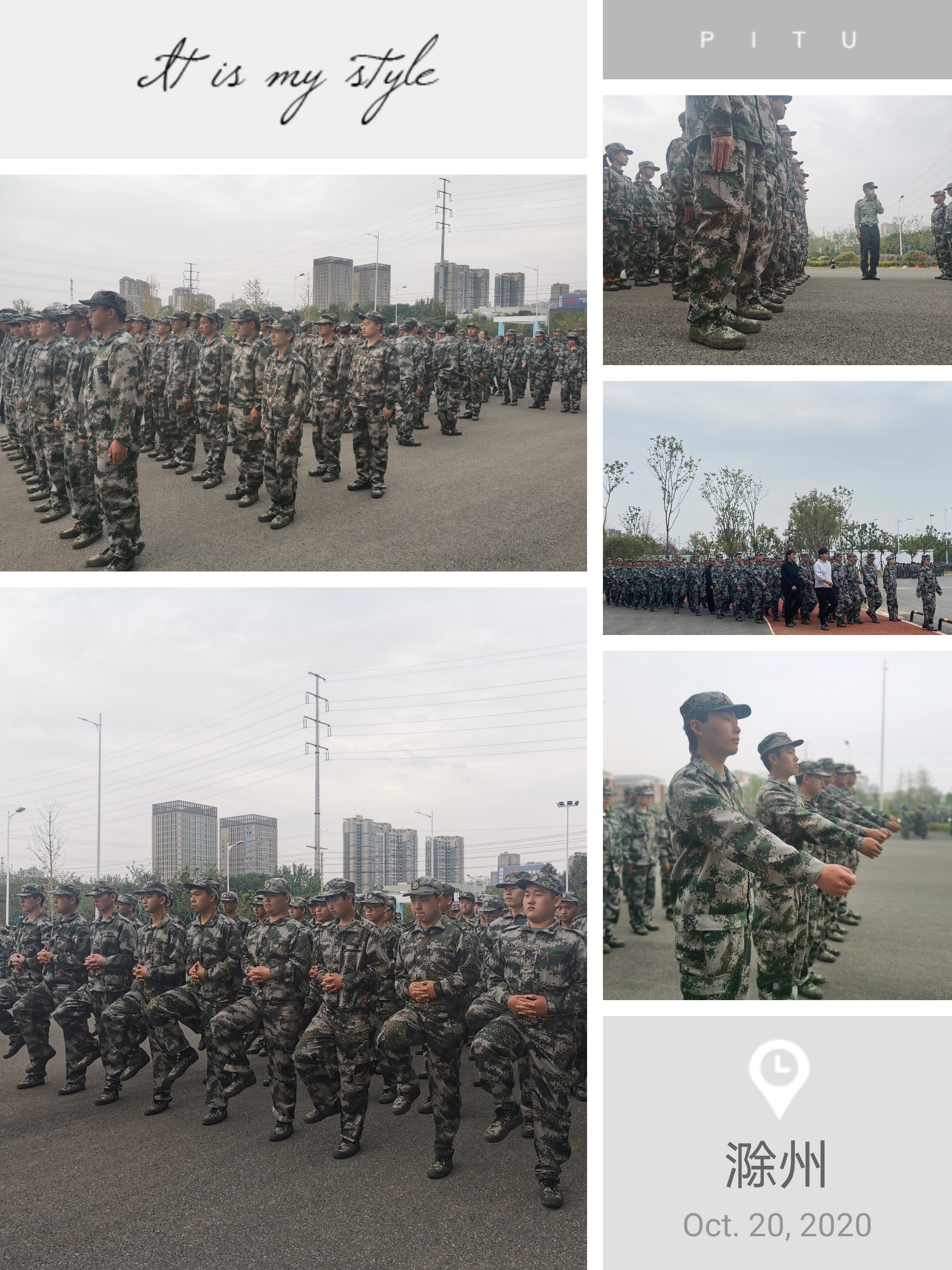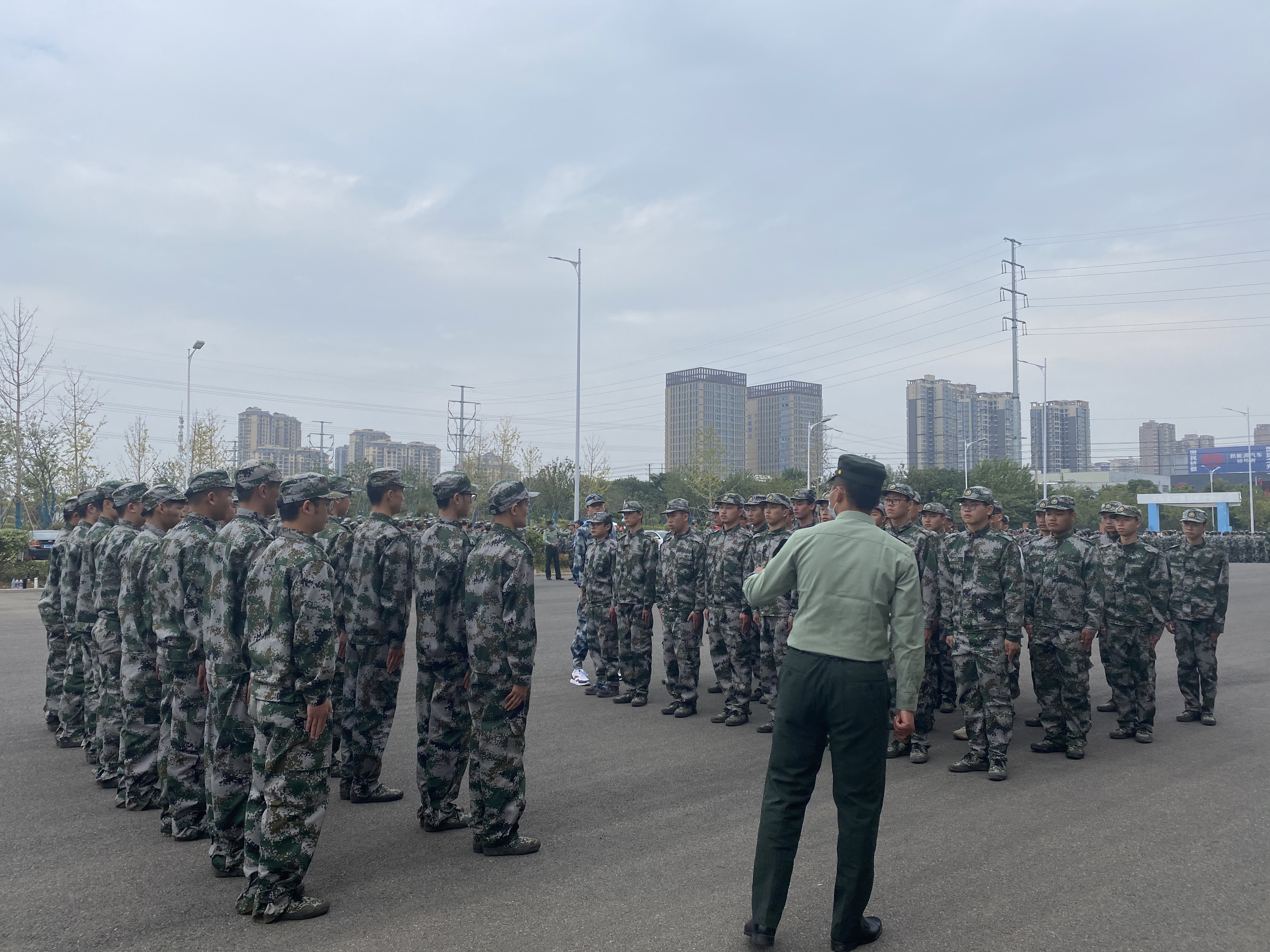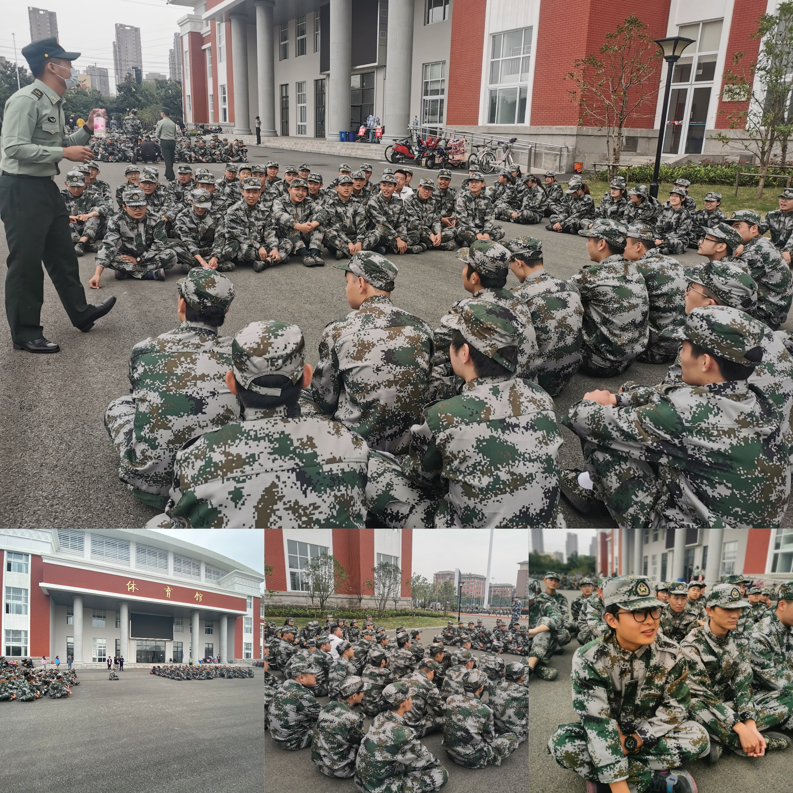 我院本次的军训训练先后在旧操场和体育馆门口进行。在经过军训服领取、教官见面仪式、军训动员大会的召开等准备工作后,16日下午我院20级的400多名同学准时到达地点整队待命,在交代各项事宜后正式投入到训练中。尽管天气多变,但我院学子的热情不减,都以最好的精神面貌参加到军训中。在军训中,我们看到了很多的感人事迹,有的学生病倒了却凭借着顽强的意志,稍有好转便坚持训练;有的学生身体不适,但仍旧在坚持训练。在部队教官的严格要求以及热心指导下,短短的几天里,同学们的训练初有成效。四面转法、蹲下、跨立、稍息、齐步走、解散、集合等既定训练科目已经能够很好的完成。所有人都可以感受到来自四面八方因军训而张扬起来的的朝气蓬勃。