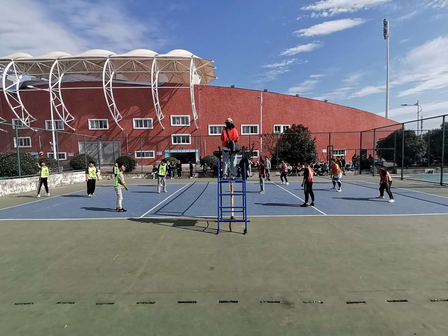 当比赛的哨声响起,我院先发制人,快速得分,下面的加油呐喊声也十分响亮,在运动员们的奋勇拼搏下我院拿下了第一小局。接着第二小局开始后两队得分你追我赶,比赛的场面十分焦灼,在对方领先7分的情况下,我院男生还是依靠着自己卓越的技术和顽强的毅力追平了比赛,但是最后由于发球的失误输掉了第二小局。到了最后的决胜局,对面的配合十分默契然而我院的运动员们不抛弃、不放弃奋斗到最后因体能不支而遗憾输掉比赛。
