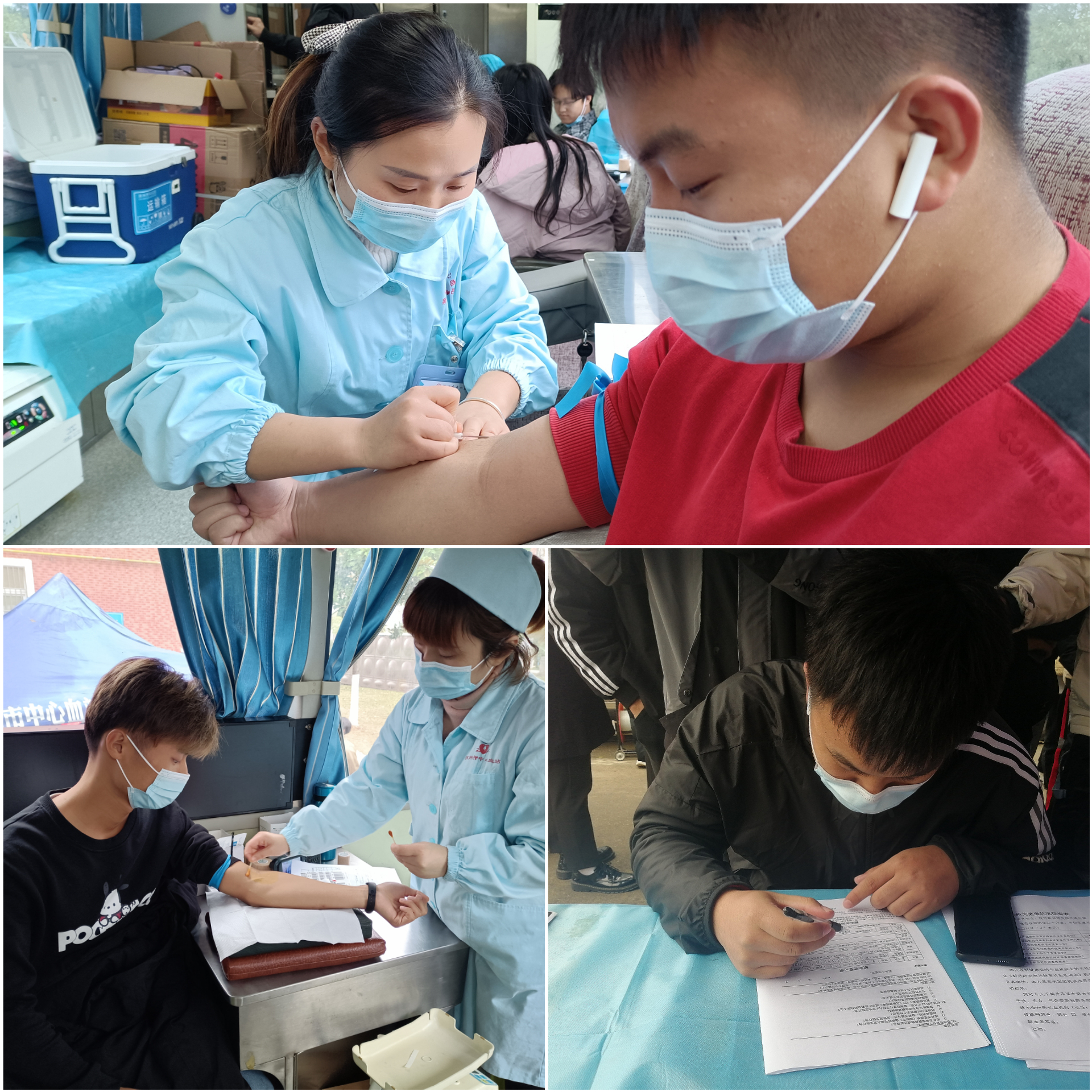 献血期间,我院学子在志愿者和医护人员的指导下依次排队信息登记、健康体检、静脉采血、领取献血证等环节。有的同学为了参与献血在现场排队很久,但大家纷纷表示,在抗击疫情的特殊时期,很高兴自己能够通过无偿献血的方式“为爱逆行”。同时,现场医护人员特别指出合理献血可以有益身体健康,并且本次采血人员均为专业医师团队,所用采血器具皆为一次性的卫生用品,让同学们可以放心参加此次献血活动。献血过程中,我们在询问同学为什么参加无偿献血活动的时候,很多同学表示仅仅是想为社会做一些力所能及的贡献。