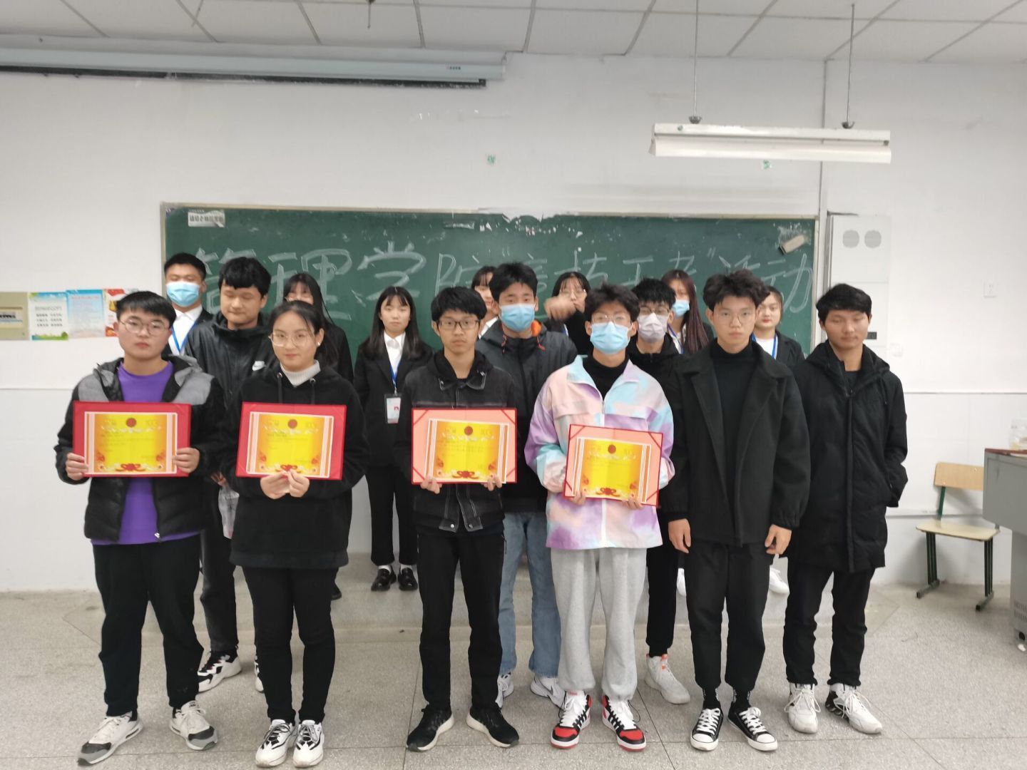 活动开始前我们采取了线上宣传的方式,通过建立QQ 群宣传推广,鼓励同学们积极参加。比赛开始,参赛选手全程相互交流,气氛活跃紧张,选手们纷纷展示了自己的光芒,向我们展现了当代大学生的活力。最终在一番激烈的角逐,整场比赛在欢快的气氛中落下了帷幕。我们秉着公平公正的原则对选手进行了记分,最终谢新仟同学荣获一等奖,获得二等奖的是王世杰,李苏皖获得了三等奖。活动结束后,评委们为获得名次的同学进行了颁奖和拍照留念。