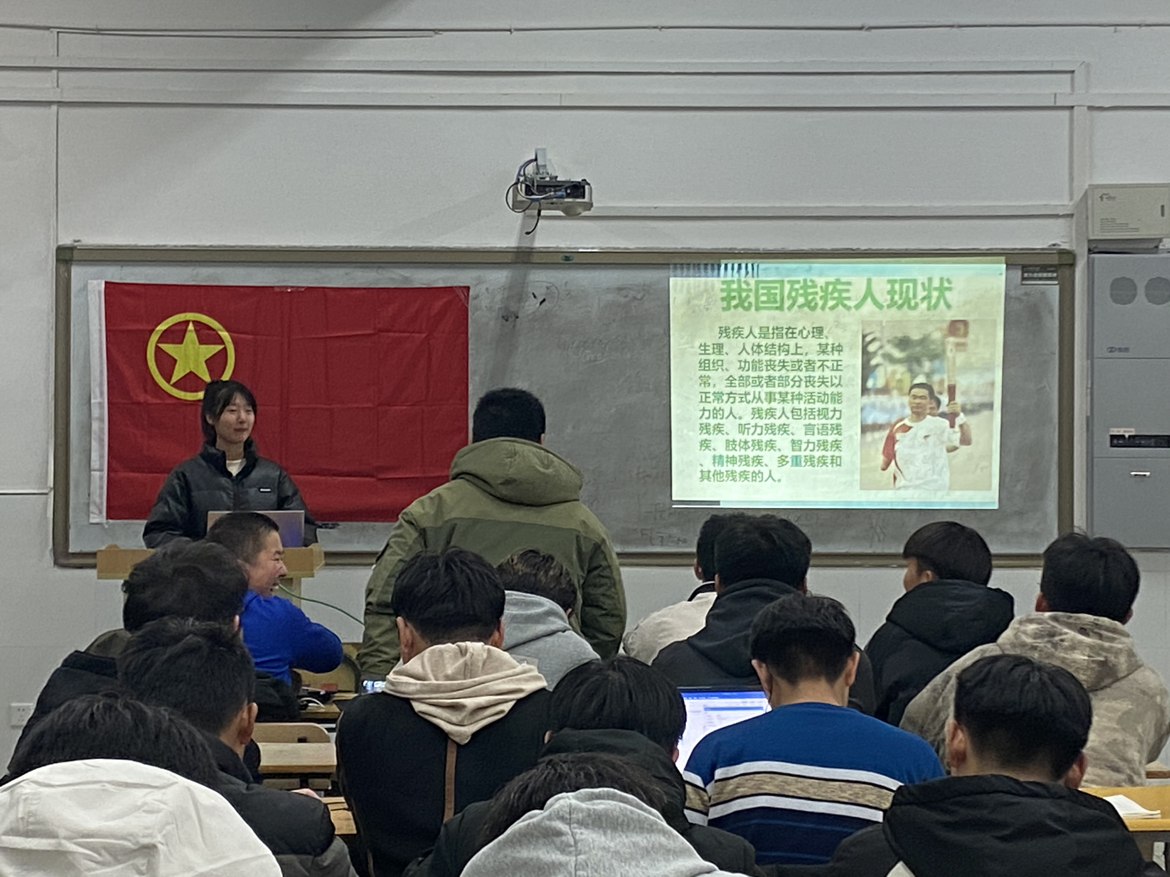 为了增强同学们对残疾人的关心,认识残疾人日常生活的艰辛,信息工程学院20级软件2班团支部于12月3日晚上在致善楼2514教室开展以“关爱残疾人,让世界充满爱”为主题的团日活动。参与此次活动的有20级软件2班全体同学。