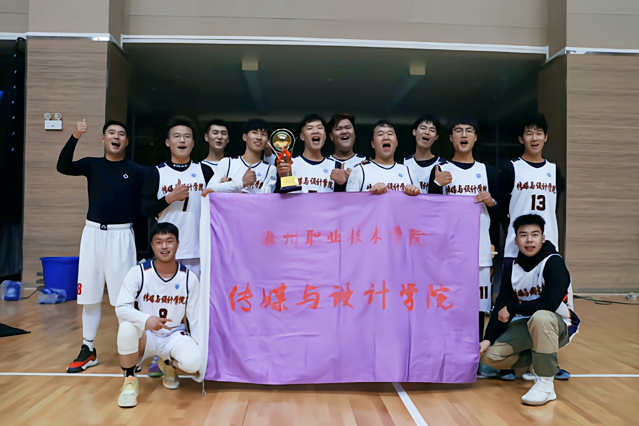 激烈的篮球赛随之迎来了尾声,最终我院获得第一。此次篮球比赛不仅向全校师生展现了我院同学积极向上的青春风采,同时也增进了同学之间的凝聚力和战斗力,培养了大家的集体荣誉感,增进了各院的友谊,展示了我院同学团结、和谐、勇于拼搏的精神风貌。 胜利的欢呼声充满整个篮球场,传媒与设计学院运动细胞极佳!