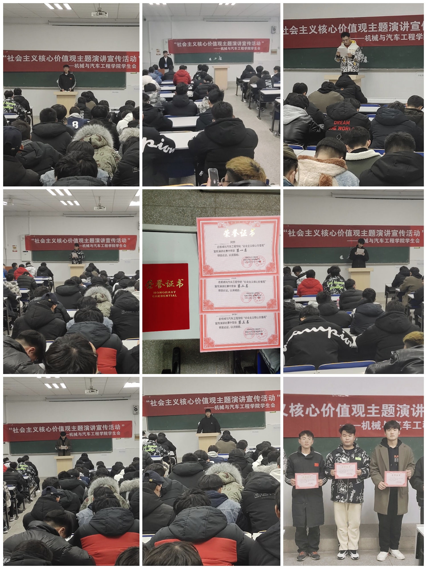2020年12月24日星期四晚上,机械与汽车工程学院在教学楼5113教室开展“社会主义核心价值观”主题宣传演讲活动。本次活动由机械与汽车工程学院学生会承办,机械与汽车工程学院学生会干事卢宇航同学担任活动主持人,机械与汽车工程学院团学干事徐晓龙,余学远,梁瀚允,黄鹏飞担任活动评委,参加比赛的选手为2020级各班级代表。