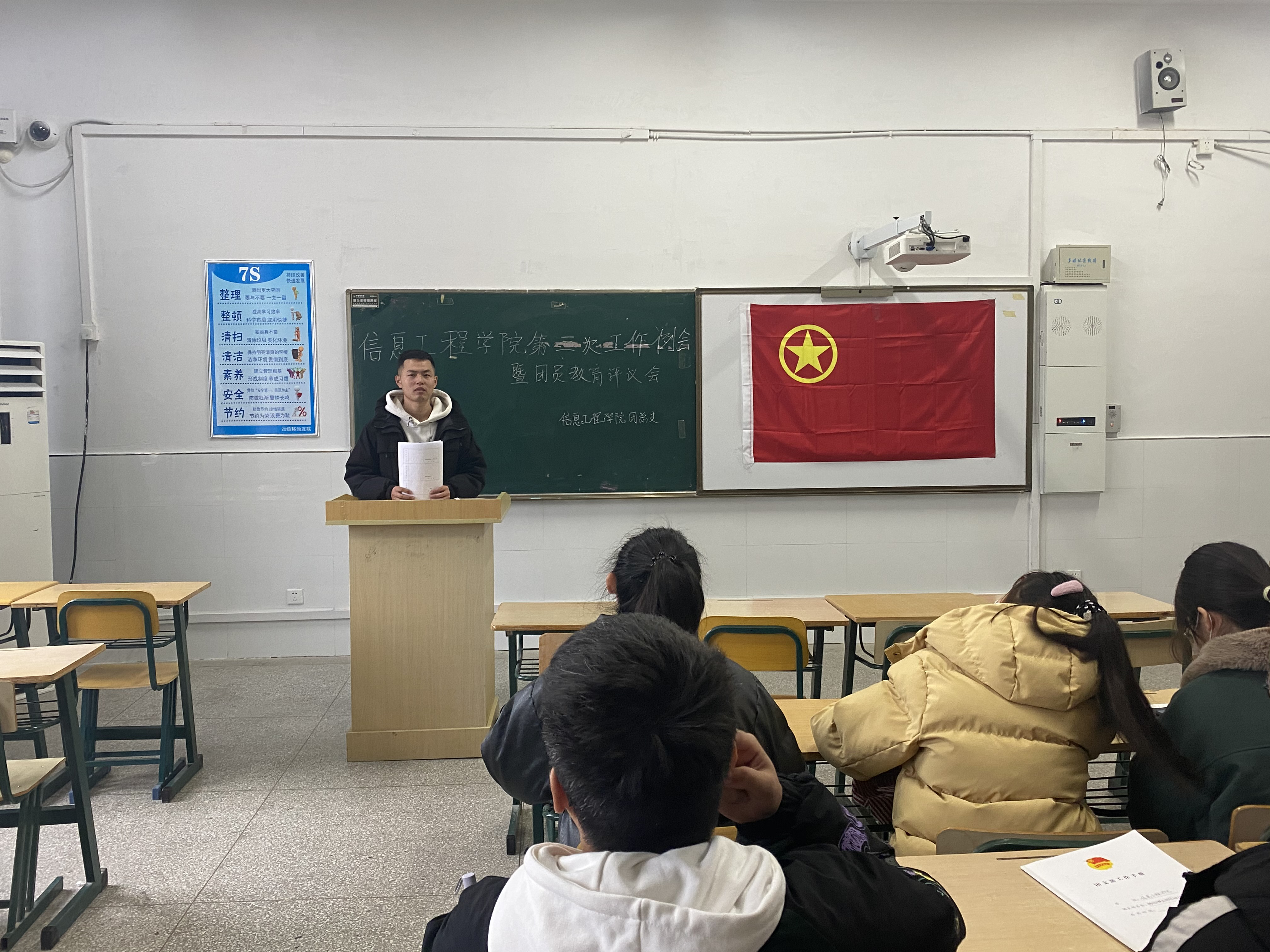 为提高支部成员的团员意识,认真落实从严治团各项规定,加强团组织建设,信息工程学院团总支于在12月29日中午在致善楼2506教室召开了第二次工作例会暨团员教育评议会,本次评议会由副书记张清主持,团总支全体干事级各班级团支部书记、组宣委员参加。