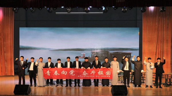 决赛分为风采展示和才艺展示两个环节。20级机电一班团支部书记石根以题为《凝青年之力,创活力支部》,从完善组织建设,提高支部引领力;坚持思想引领,增强支部凝聚力;激发担当使命,提升支部服务力三个部分介绍支部风采。支部17名成员精心编排的情景短剧《红船》,还原了1921年中共一大会议召开的部分内容,他们用新时代青年的担当向这段光辉党史致敬,表达了“青春向党、奋斗报国”的决心。最终,综合三个环节的得分,20级机电一班团支部以总分第一的成绩获得第六届团支部风采大赛一等奖。
