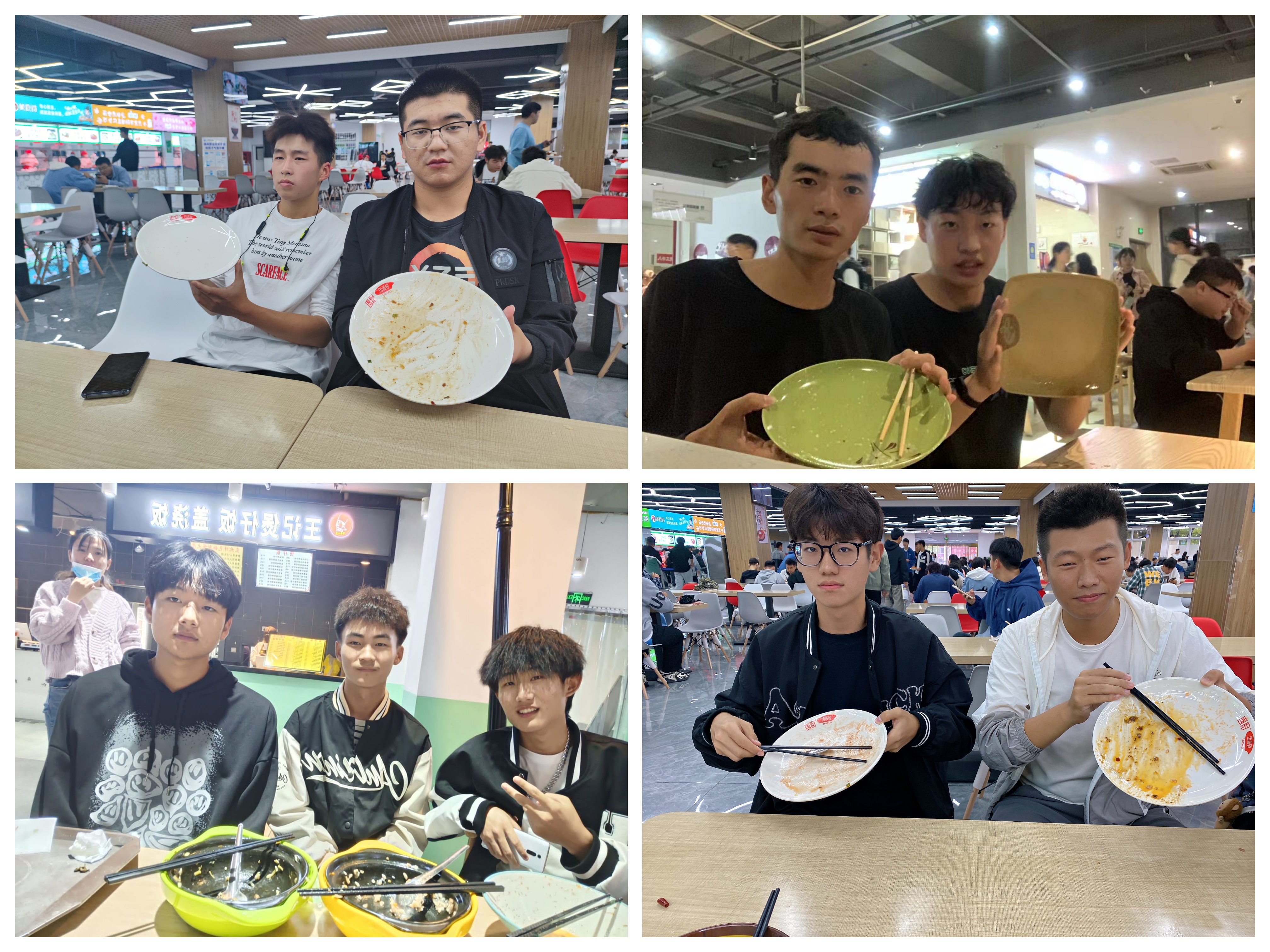 三是践行光盘行动,倡导舌尖文明。10月16日,我院各班级同学自发组队前往学校食堂打卡光盘行动并拍照合影,同时号召我院同学们拍摄“光盘”,争做“光盘小达人”。结束后,部分班级团支书也通过主题团课的形式给班级同学分享有关世界粮食日的小知识并强调了粮食的来之不易。