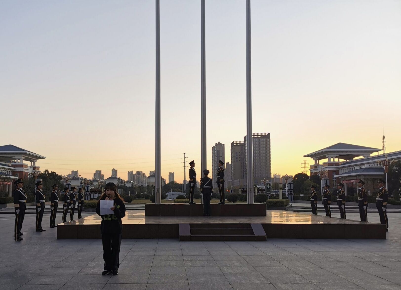 活动伊始,英姿飒爽的国旗护卫队队员伴随着庄严的中华人民共和国国歌,在全体师生的注目礼下五星红旗冉冉升起。学生代表发言,他倡议了当代大学生应该积极学习校园文明16条,争当文明先锋,同时号召大家作为当代大学生应该投身到校园文明活动中,为建设文明校园出一份力。