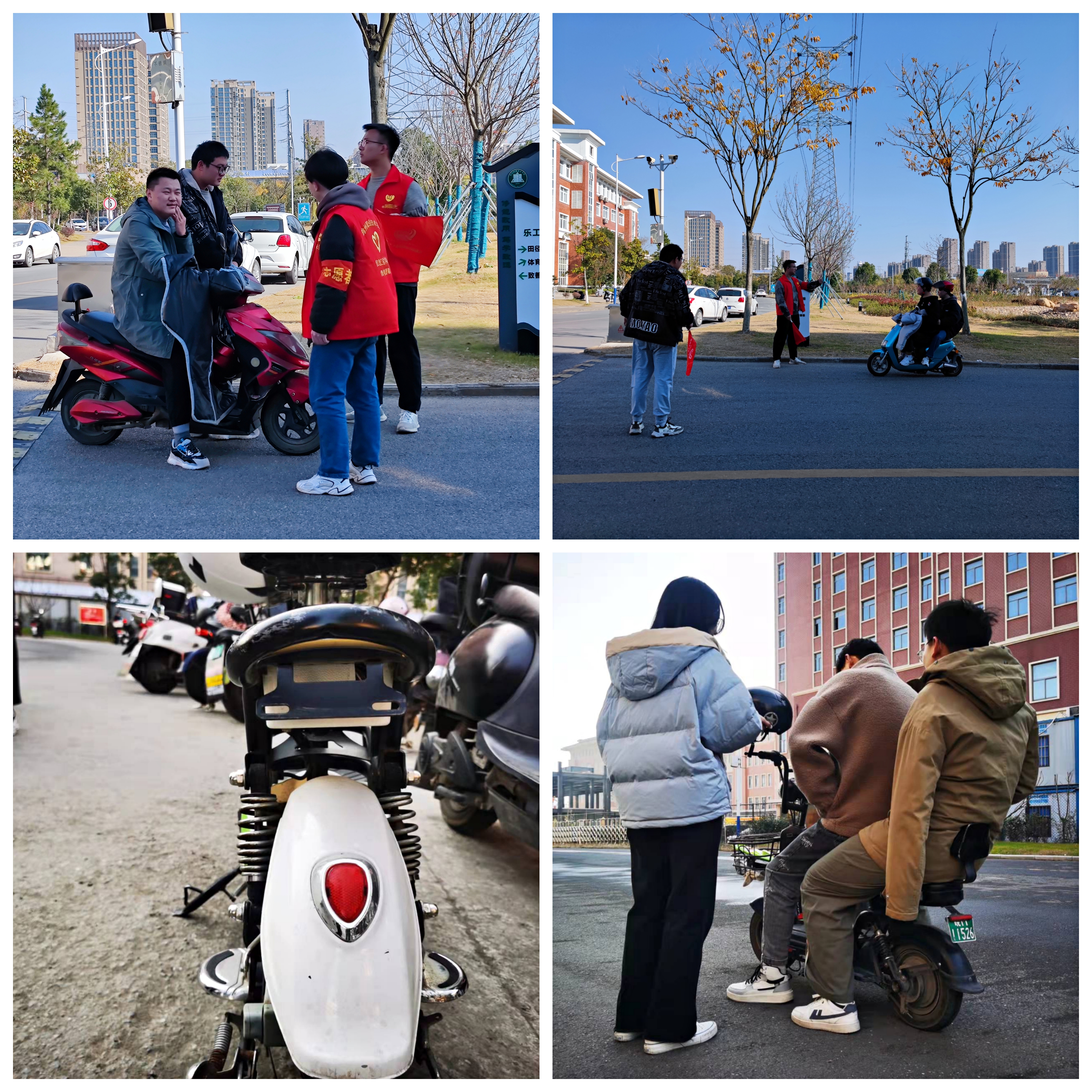 活动中,各团支部同学穿上志愿者服装,主动在校内外十字路口进行交通执勤,耐心劝导不遵守交通规则、车子未上牌照的同学,呼吁他们尽快上牌并告知他们要熟记校园文明16条。并赞赏规范行驶佩戴头盔的同学。执勤期间,志愿者同学用手机给被劝导的同学播放了相关真实的交通事故视频,直观的画面,令人触目惊心,让同学们深刻地意识到遵守交通规则的重要性。同时,部分被劝导的同学也自愿加入到此次活动当中,活动起到了较好的反响。
