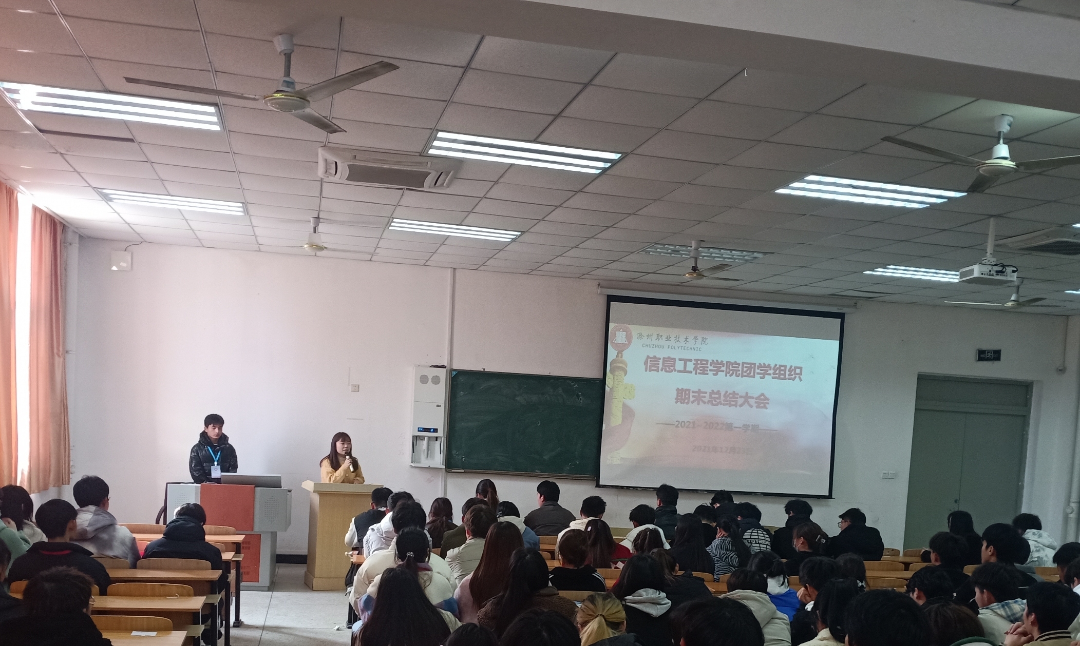 为全面总结团学年度重点工作和年度目标的完成情况,更好的总结这一学期的工作,提高大一共青团工作者的工作热情和工作质量。12月23日中午,信息工程学院团学组织在南阶103举行了期末总结大会。学院团总支负责人朱睿老师、全体共青团工作者参加了此次大会。