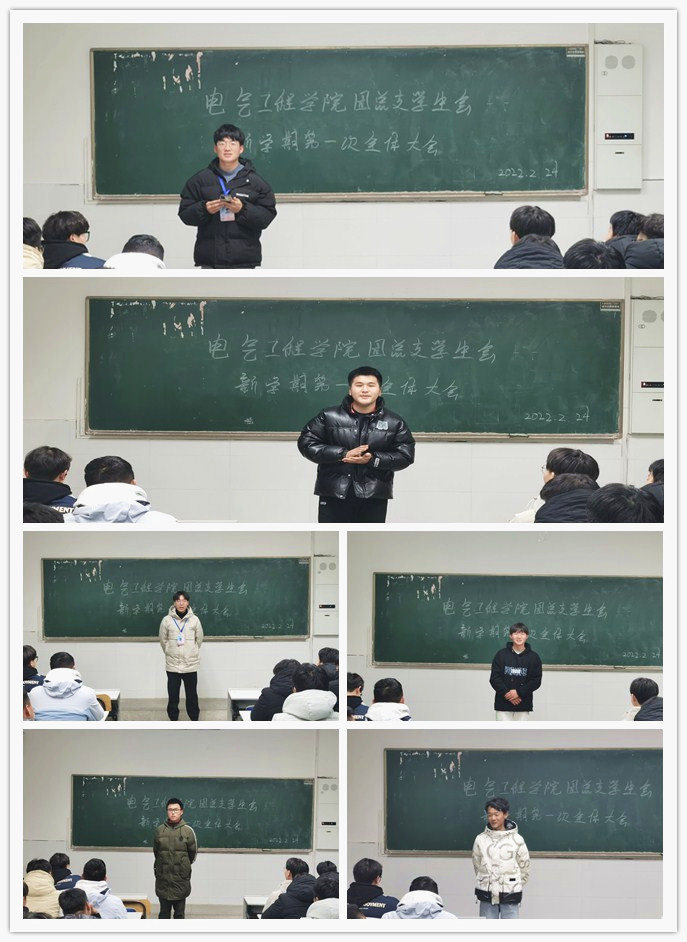 为促进电气工程学院团学工作顺利开展,增强组织凝聚力,2月24日晚7点,我院团支部、学生会新学期第一次全体大会在致新楼5103教室召开。会议由我院团总支副书记和学生会轮值主席石根主持,全体成员参加。
