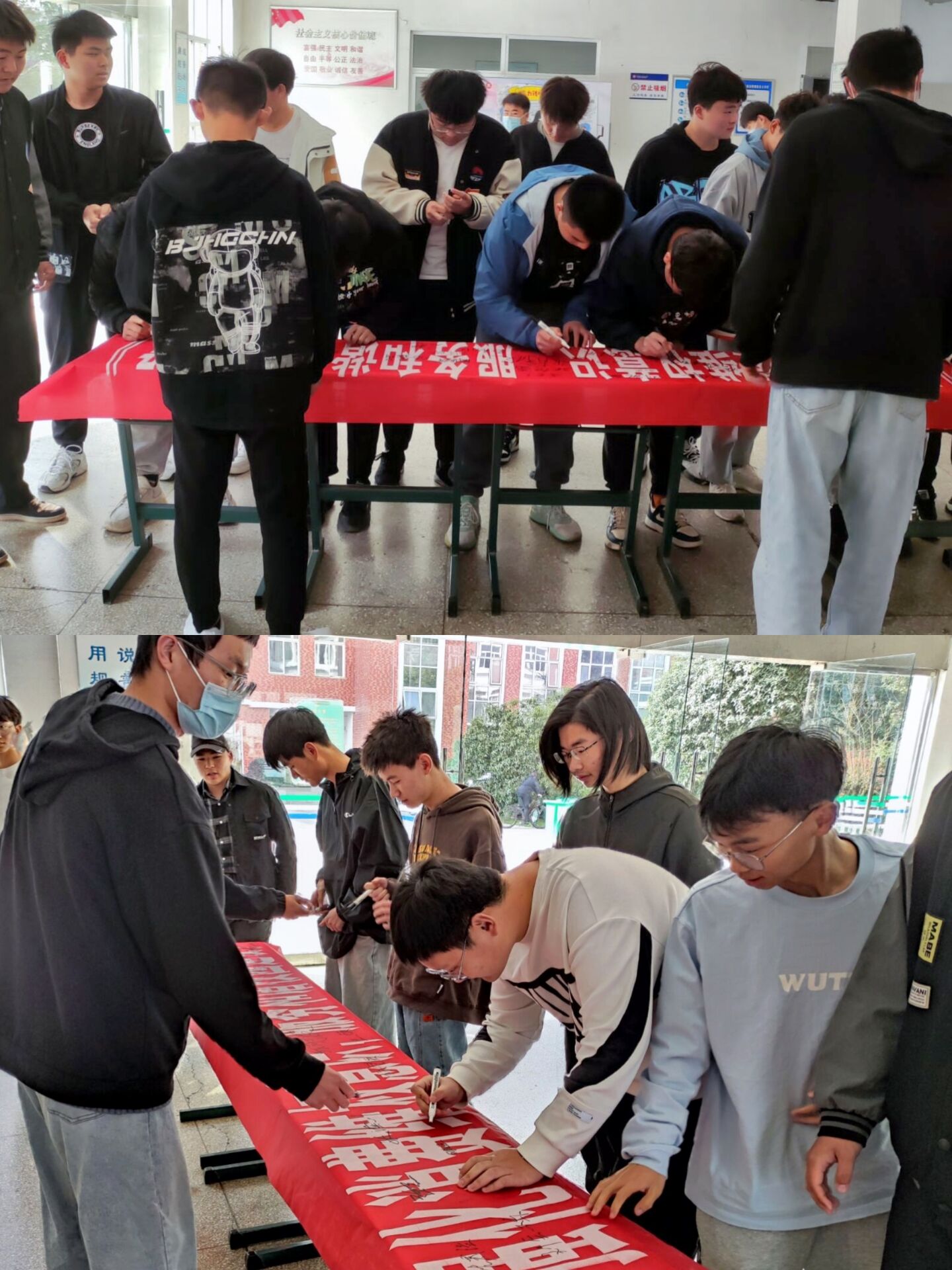 活动中,权益部人员向同学们发放了消费者权益知识宣传单,旨在帮助同学们了解消费者的权利和义务,加深同学们对权益知识的学习,并将“3·15维权日”横幅摆放在5号教学楼大厅内,同学们依次有序地在横幅上签下了自己的名字,通过自己的行动表示对活动的支持,并在活动圆满结束后合影留念。