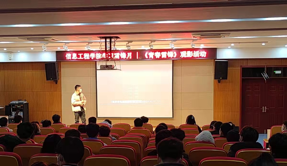 观影结束后,团总支副书记王乐对此次观影主题团日活动做了总结,他说雷锋精神体现了中华民族传统美德,是一面永不褪色、永放光芒的旗帜。希望同学们能坚定勤俭节约、艰苦奋斗的决心,弘扬雷锋精神。