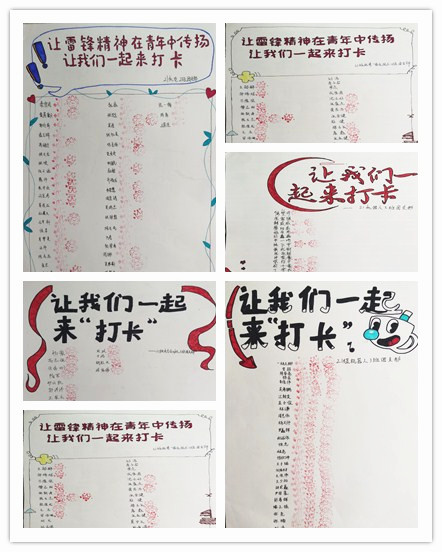 本次“学雷锋打卡”活动发出“文明校园卡”和“勤俭节约卡”,得到我院团学青年的积极响应,他们利用课余时间,将生活中的点点滴滴与学习雷锋精神相结合,通过在校园内捡垃圾、整齐摆放电动自行车、清理楼道卫生、实行“光盘行动”等,共同传递着和谐美好的校园文明风尚。各支部制作“让我们一起来打卡”记录表,团学青年完成“打卡”后方可得到一枚印章,用贴近青年的方式接力传承雷锋精神。