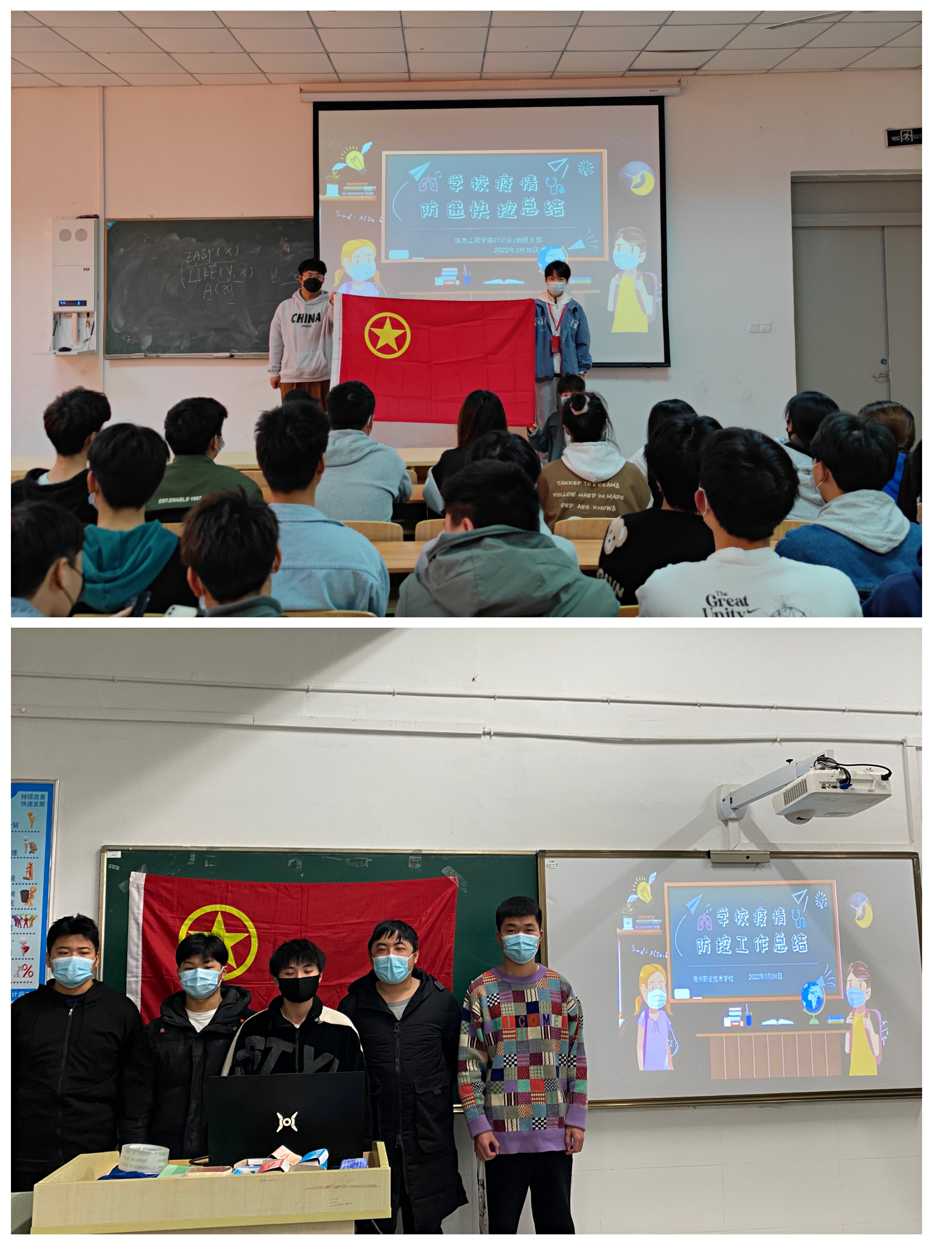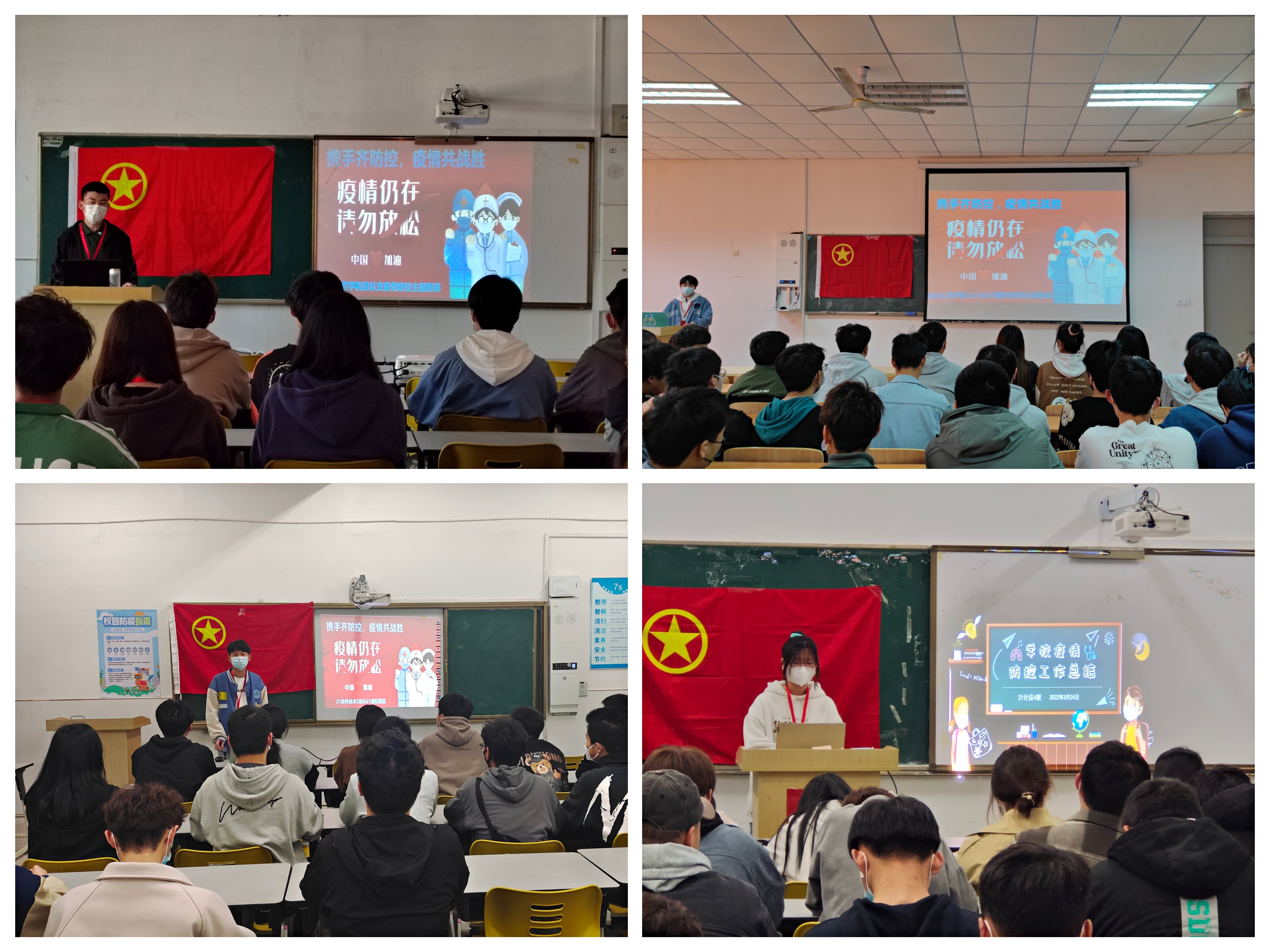 本次团课主要围绕“当前疫情防控严峻形势、学校疫情防控措施、宣扬我院部分学子疫情防控先进事迹、筑牢安全防线”四个方面展开。团课期间,各团支部先是带领同学们认识到当前疫情防控的严峻形势及学校的各项防疫措施,随后宣扬了我院王乐等多名同学在学校疫情防控期间的认真负责的先进事迹,及时传播疫情防控的好声音、正能量。