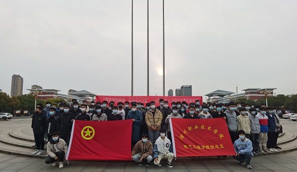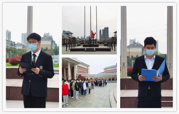6点30分,校国旗护卫队护送鲜艳的五星红旗进场行礼,伴随庄严的国歌,五星红旗冉冉升起,在场的每一名团学青年满怀崇高的敬意向国旗行注目礼。21机电三班团支书钟国庆作为团学青年代表进行国旗下讲话:我们现在的生活越来越好,我们须臾不能忘记今天的一切是怎么来的,不能忘记革命先烈的奋斗牺牲,不能忘记共产党人矢志不渝的初心使命。作为新时代青年,我们要传承红色基因,赓续共产党人精神血脉,开拓进取、奋发有为,不负青春、不负韶华,把对革命先烈的敬仰之情转化为前进的动力,担负起肩上的责任和使命。