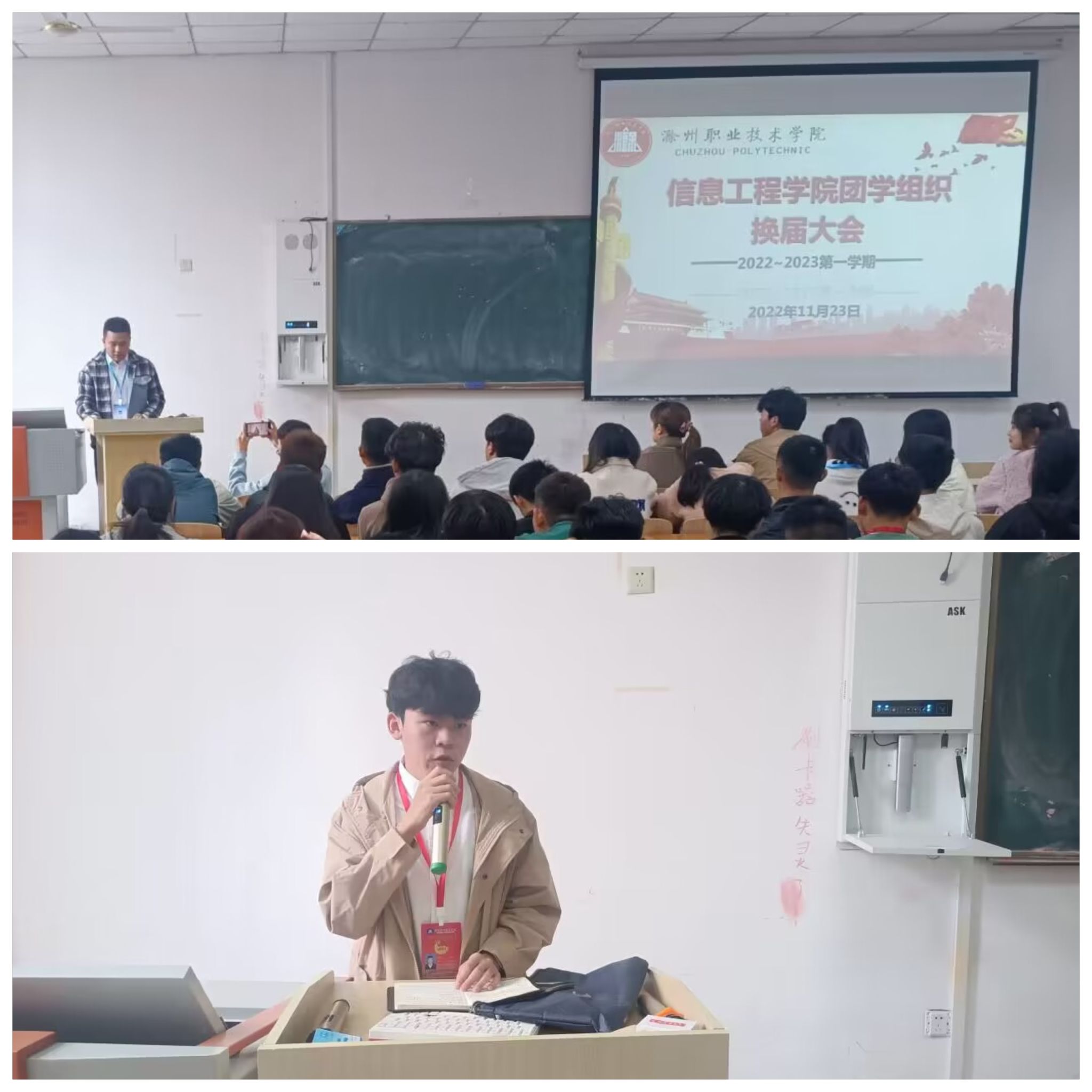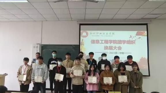 为进一步加强我院团学队伍建设,提高团学组织学生管理能力。11月23日,信息工程学院在南阶103教室召开了团学组织换届大会。会议由学生会干事张乐乐主持,出席本次会议的有团总支书记朱睿及全体团学干。