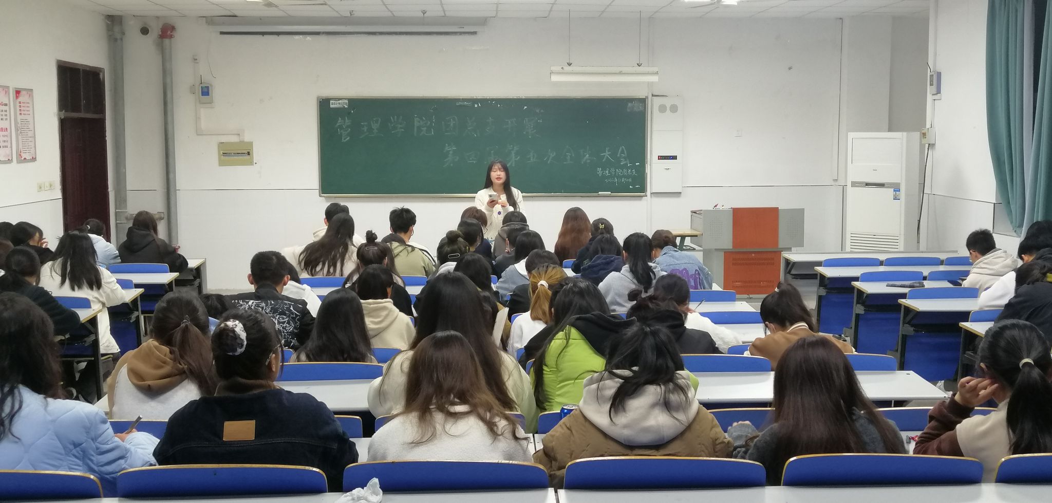为了进一步加强团总支的组织活动管理,完善学生组织建设,推动各项工作的顺利进行。管理学院团总支于2022年11月20日6:30在致真楼1101教室开展第四届第五次全体大会,本次大会由团支书副书记於美娜负责,团总支全体成员参加。