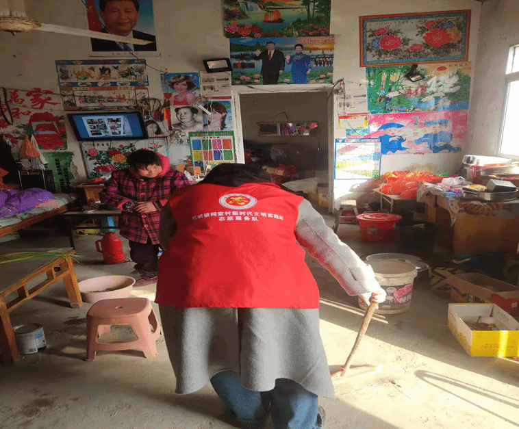 寒假期间,志愿者带上自己准备的清洁工具,来到易奶奶的家。帮助老人清扫卫生死角、擦玻璃、洗窗帘。打扫完成后,志愿者们耐心地陪老人聊天,转达了社区对易奶奶的新春问候,并询问老人的生活、身体状况,帮助老人测量血压,分类家中物品,并叮嘱老人日常生活中有什么需要一定要及时联系。