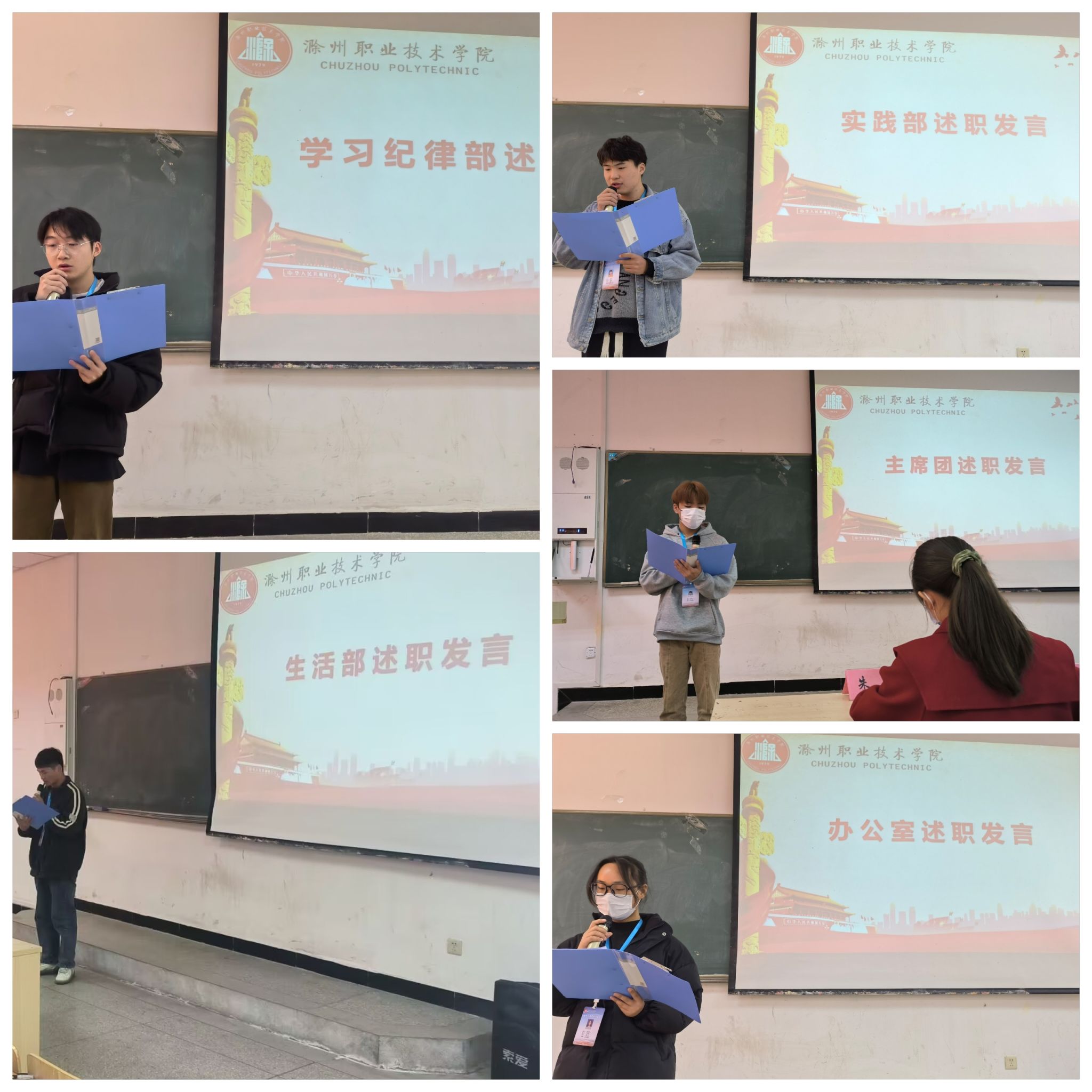 会议中,学生会各部门代表及学生会主席团依次进行述职报告,围绕“政治态度”、“道德品行”、“学习情况”、“工作成效”和“纪律作风”等方面总结了部门工作情况,指出工作重点、难点,反思不足,并提出改进措施以及下一步工作规划。