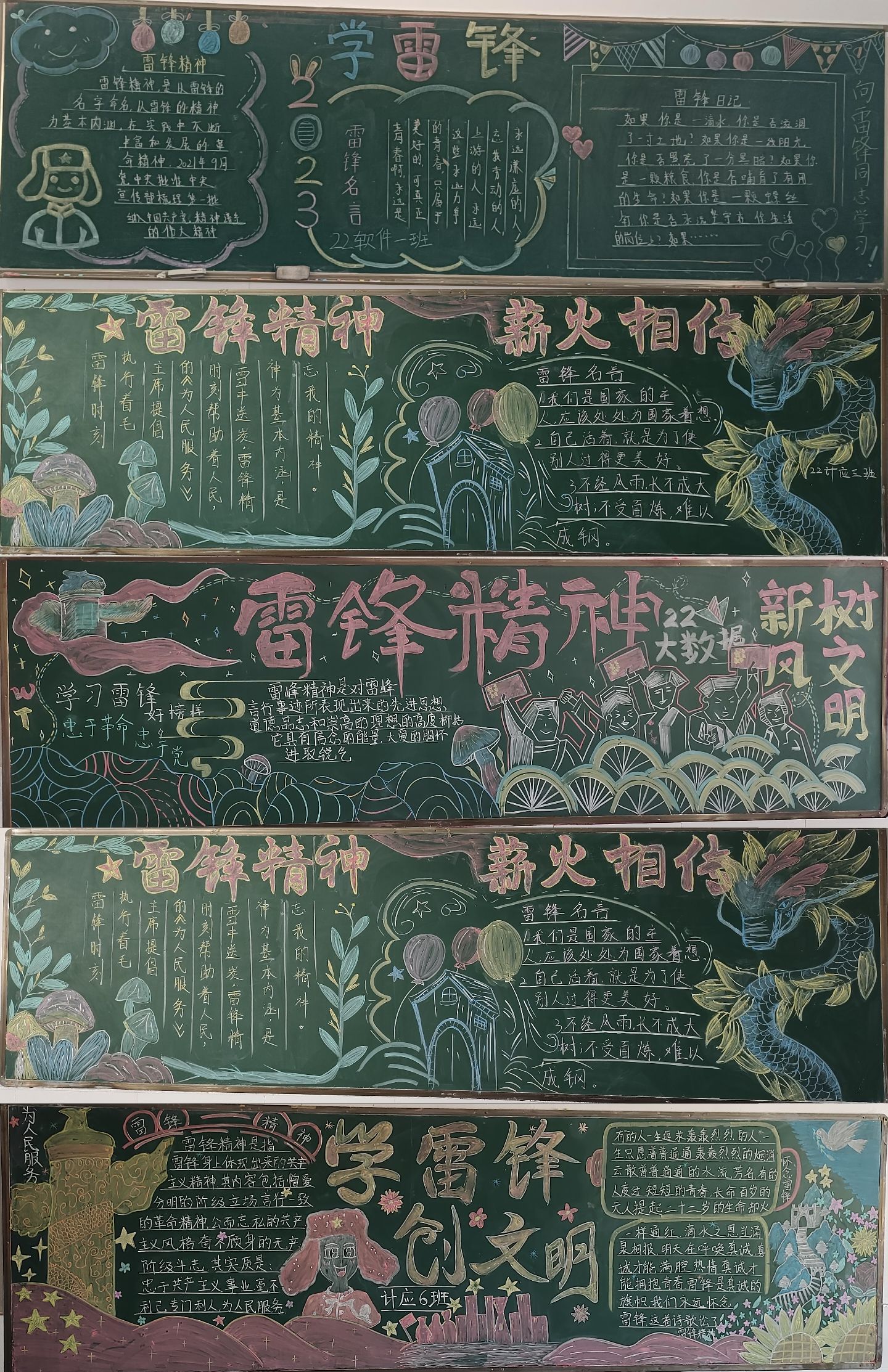 3月5日为学雷锋纪念日。在第60个学雷锋纪念日来临之际,为深入学习宣传贯彻党的二十大精神,进一步弘扬雷锋精神和志愿服务精神。3月1日至3日,信息工程学院学生会在22级各班开展了学雷锋主题板报黑板报评比活动。