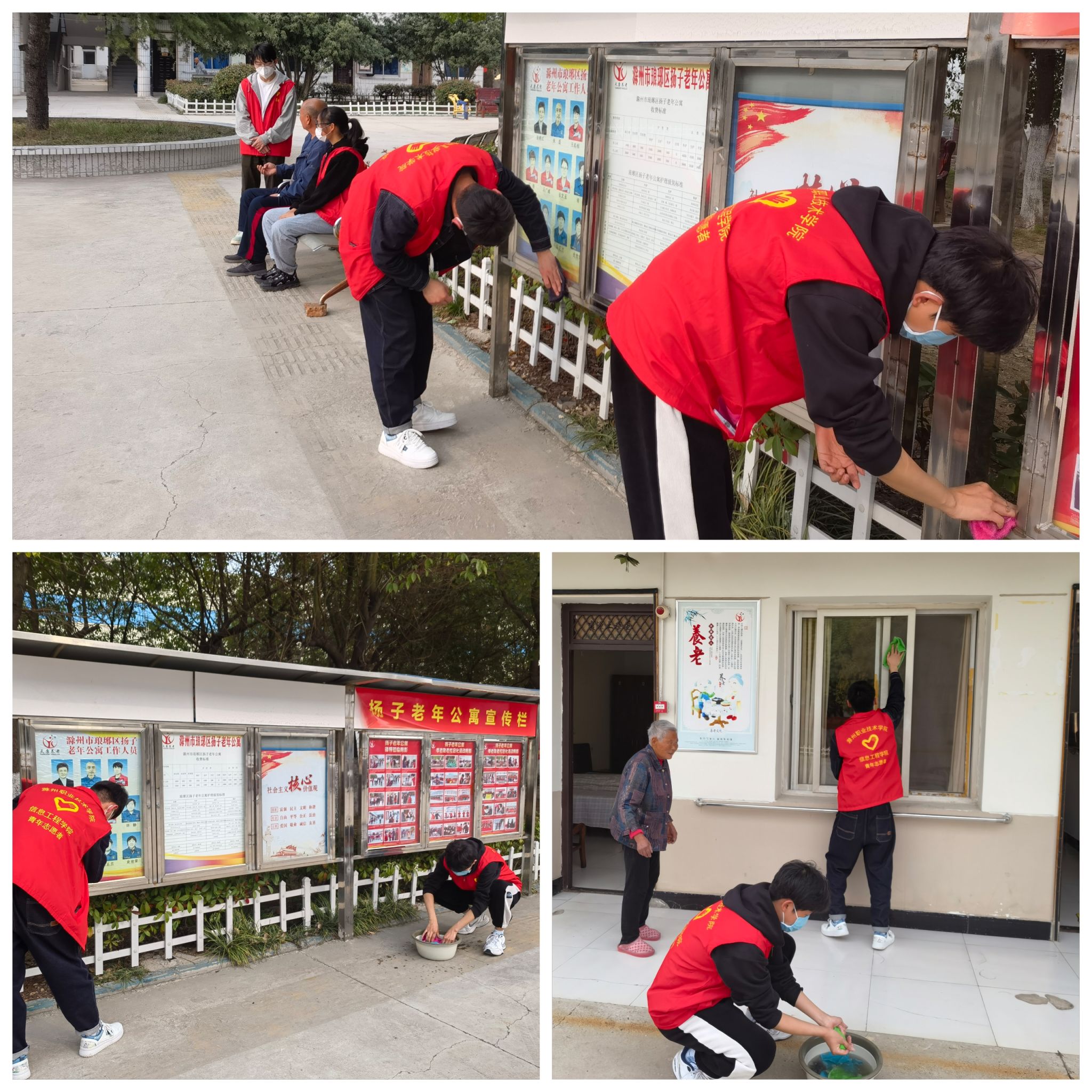 敬老院内,志愿者们分工协作,帮助打扫卫生擦玻璃、陪老人们聊天谈心、给老师修理指甲等,他们以实际行动践行雷锋精神,唱响了新时代的雷锋赞歌。