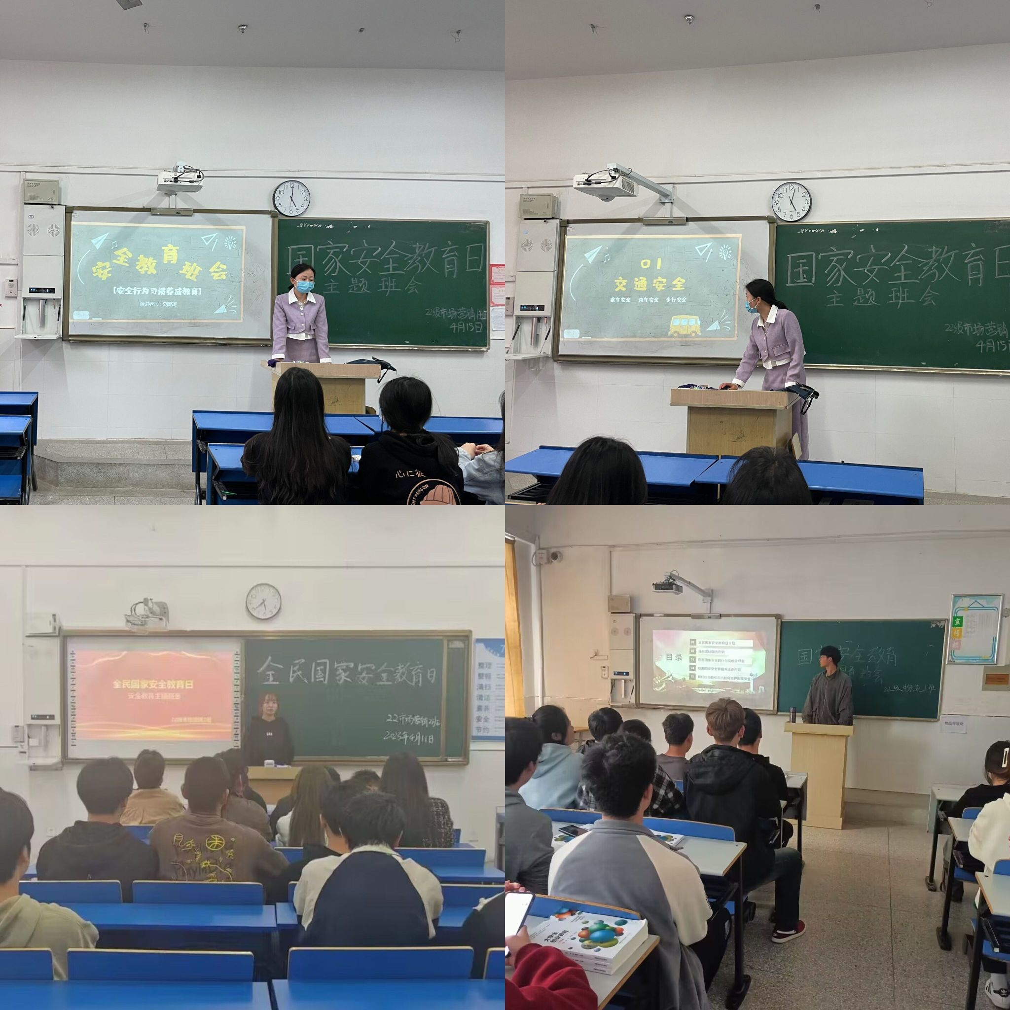 为广泛宣传国家安全基本知识,提高全体学生的国家安全法治意识,营造维护国家安全的浓厚法治氛围,进一步深化平安校园建设。商学院各班级于近日积极开展了“国家安全教育日”系列活动。此外大家还根据各自专业的实际情况,开展了为期一周的安全教育活动,通过一系列内容丰富、形式活泼的活动,使学生在参与活动的过程中,树立安全意识,掌握安全知识,提高自护自救能力,进一步强化了学校各项安全工作。