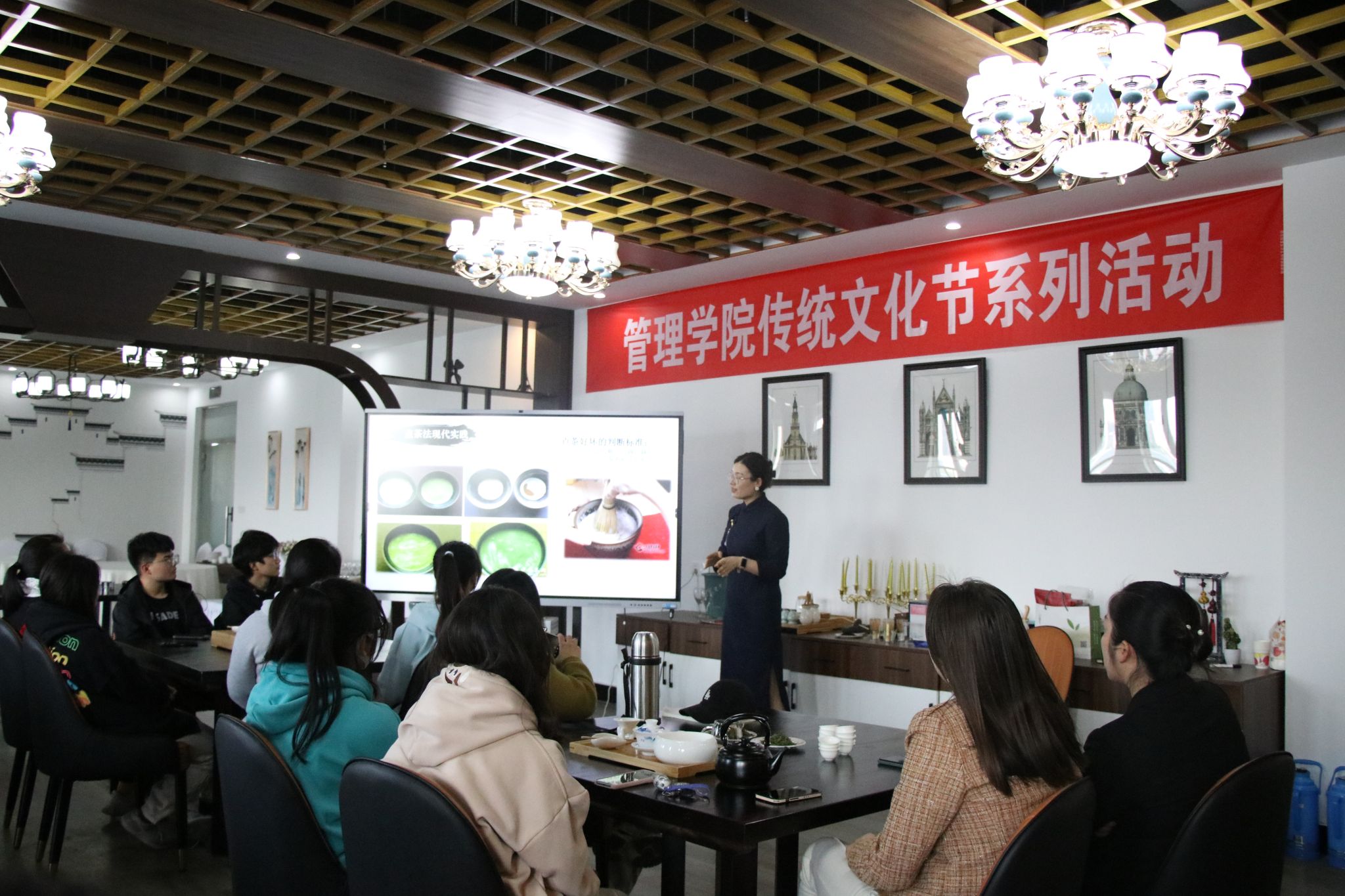 为弘扬传统文化,引领茶文化走进校园,让更多的同学知茶、晓茶、爱茶、品茶,共品茶香茶韵,共享美好生活。管理学院于2023年4月26日举办第一届传统文化节系列活动——“中国茶文化的发展和实践”,本次讲座由许方媛副教授主讲。