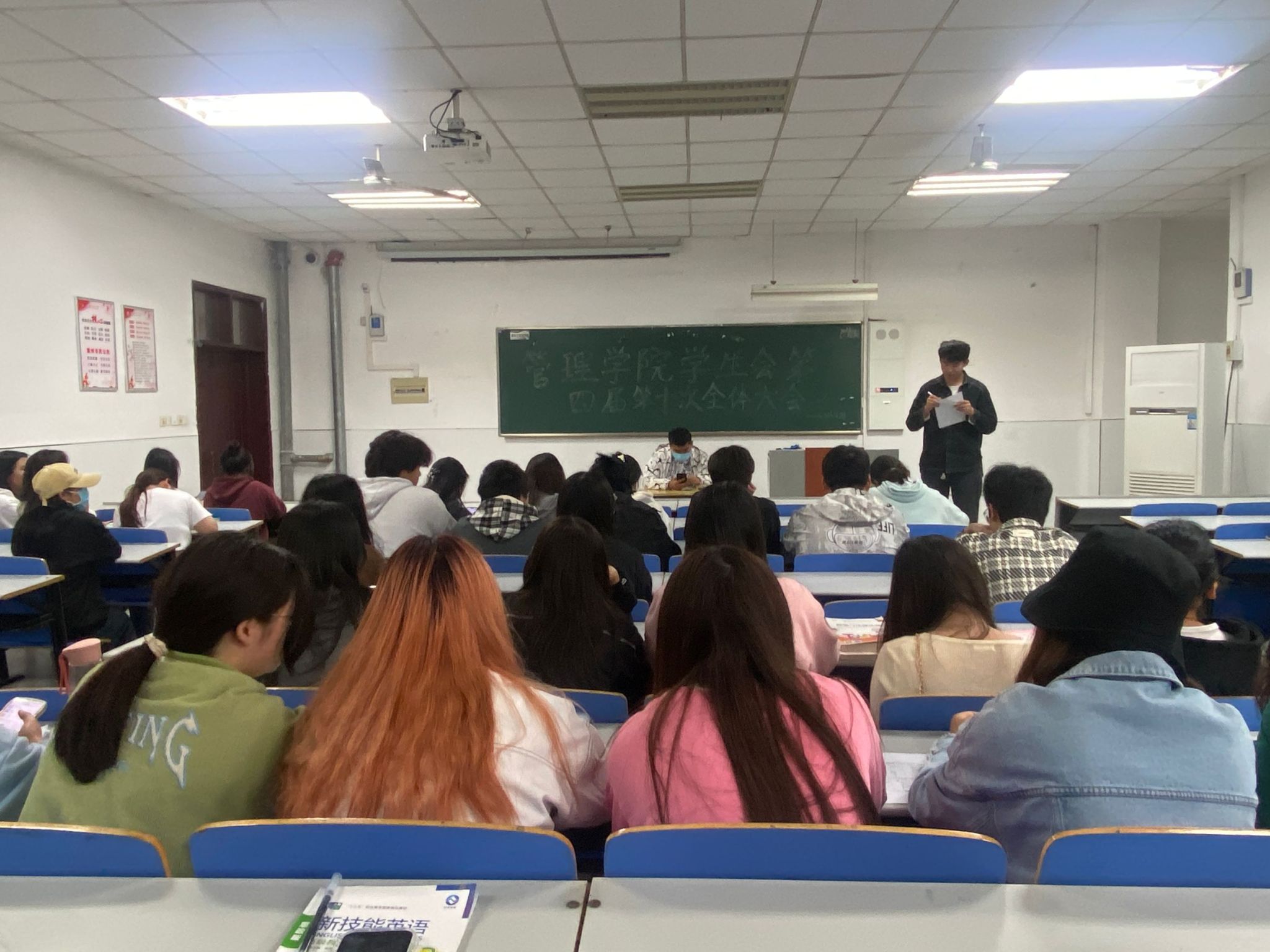 2023年4月28日中午11时30分,管理学院学生会在致真楼1101教室开展管理学院学生会第四届第十次全体大会。