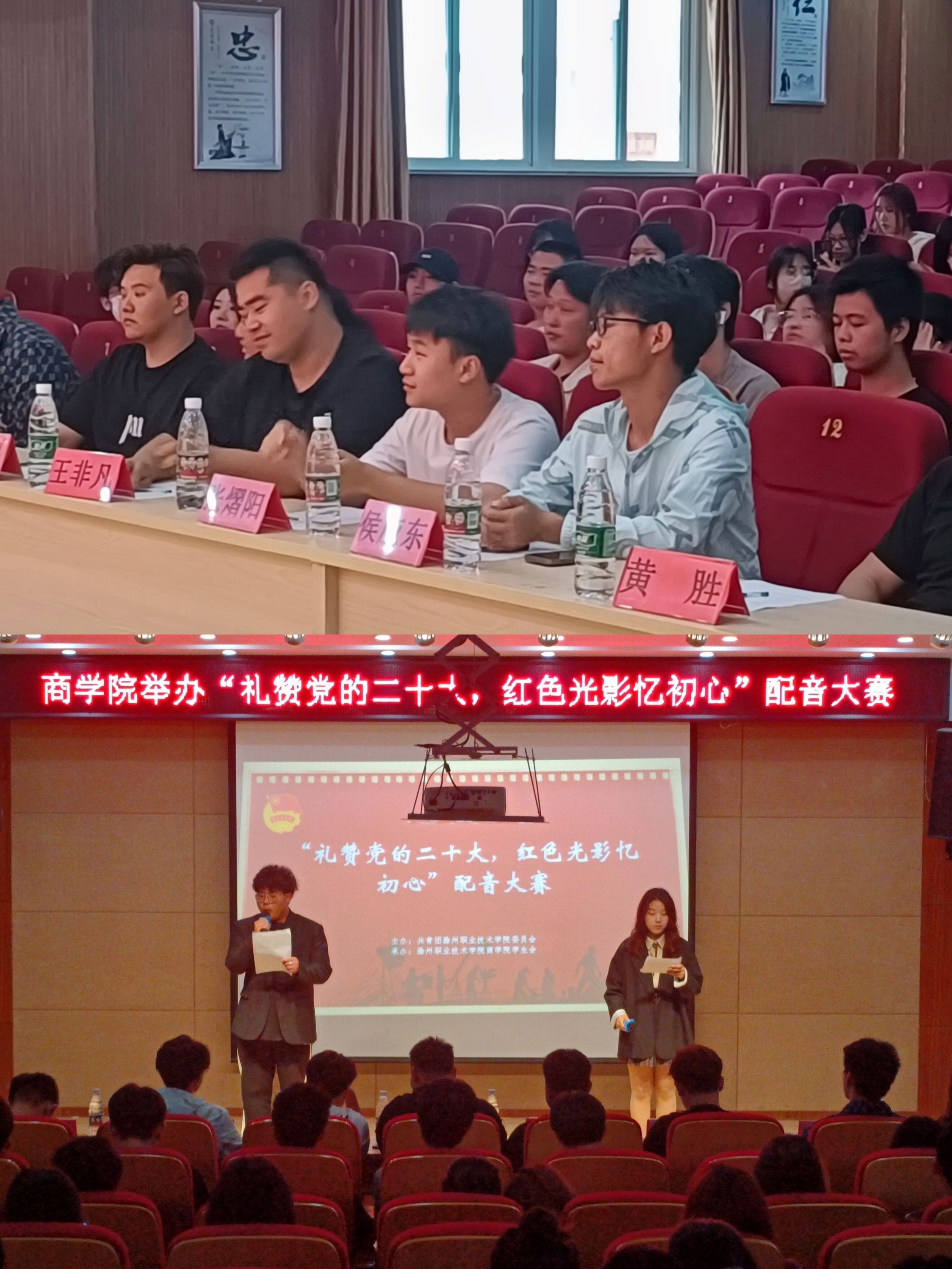 为致敬红色经典,重温峥嵘岁月,激发必赢官网学子的爱国爱党情怀,商学院学生会于5月17日在南阶203举办了“礼赞党的二十大,红色光影忆初心”红色配音大赛。