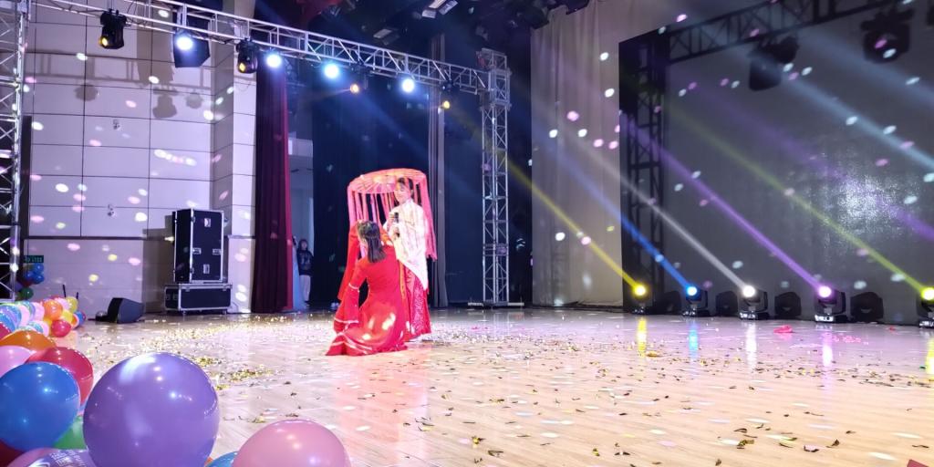 传媒系艺术团节目《牵丝戏》在现场获得了观众的阵阵喝彩。优美的旋律、动人的舞姿、美妙的歌声……让观众身临其境。