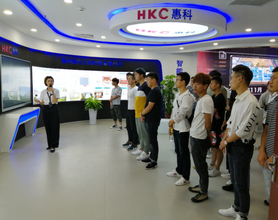 惠科光电科技公司相关工作人员在展厅向同学们介绍了惠科目前的主流产品及公司的发展史,该公司主要生产大尺寸超高清显示面板,随着公司项目投产、爬坡、满产,其HKC TV液晶面板出货量跻身全球前六名,稳居国内第三名。