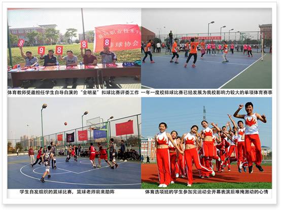 校园竞赛体系:抓好以“一节、一会、一迎、两赛”为亮点的校园课余体育竞赛体系规划设计。持续推动上半年以校运动会和体质健康测试项目团体接力赛为主线,下半年以“体育文化节”系列活动、“迎新”系列活动辅以单项体育社团特色活动为主线的校园竞赛体系建设,积极打造精品校园体育活动。形成“天天有活动、周周有比赛、月月有主题”的热闹局面。五年来,体育教学部年均组织学生各类大小活动150余场,年参与人次突破15000人,五年累计参与人次75000余人次。