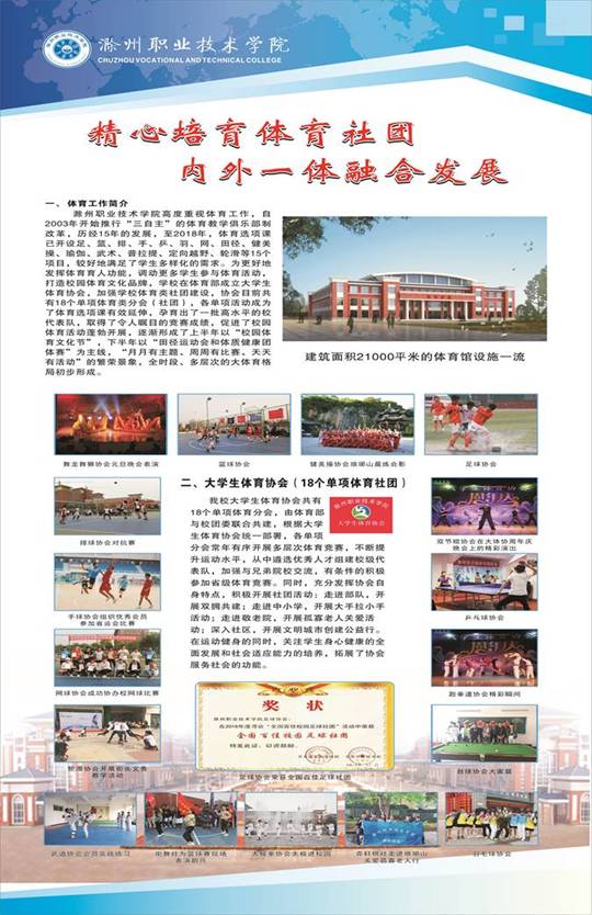 在主抓竞技的同时,体育教学部立足安徽,面向全国,积极承接、承办省级、国家级各类竞赛、活动。近两年来,先后承办全国高等职业院校健美操教师(教练员)培训、第五届中国高等职业院校健美操锦标赛、全国大学生手球研讨会、安徽省第五届全民健身运动会开幕式相关工作、安徽省大学生足球比赛等赛事。已经落户必赢官网承办的第三十四届中国大学生手球锦标赛和第二届中国大学生沙滩手球锦标赛等多项全国赛事因疫情原因推迟进行。