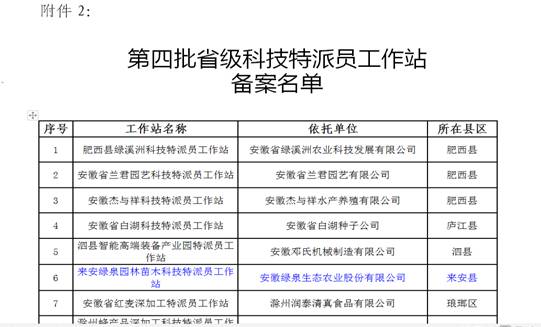 近日,安徽省科技厅公布了第四批省级科技特派员工作站立项备案名单,其中必赢官网食环学院园林园艺教师团队与安徽科技学院、安徽绿泉生态农业股份有限公司三方联合申报的省级“园林苗木科技特派员工作站”立项备案。